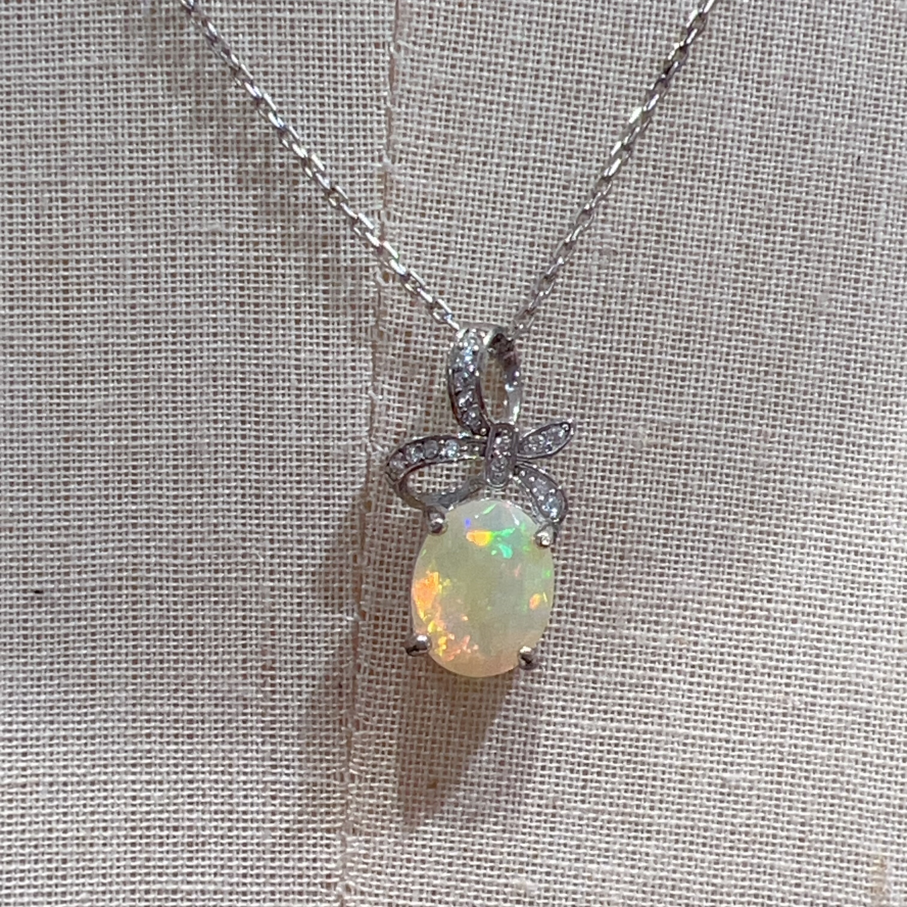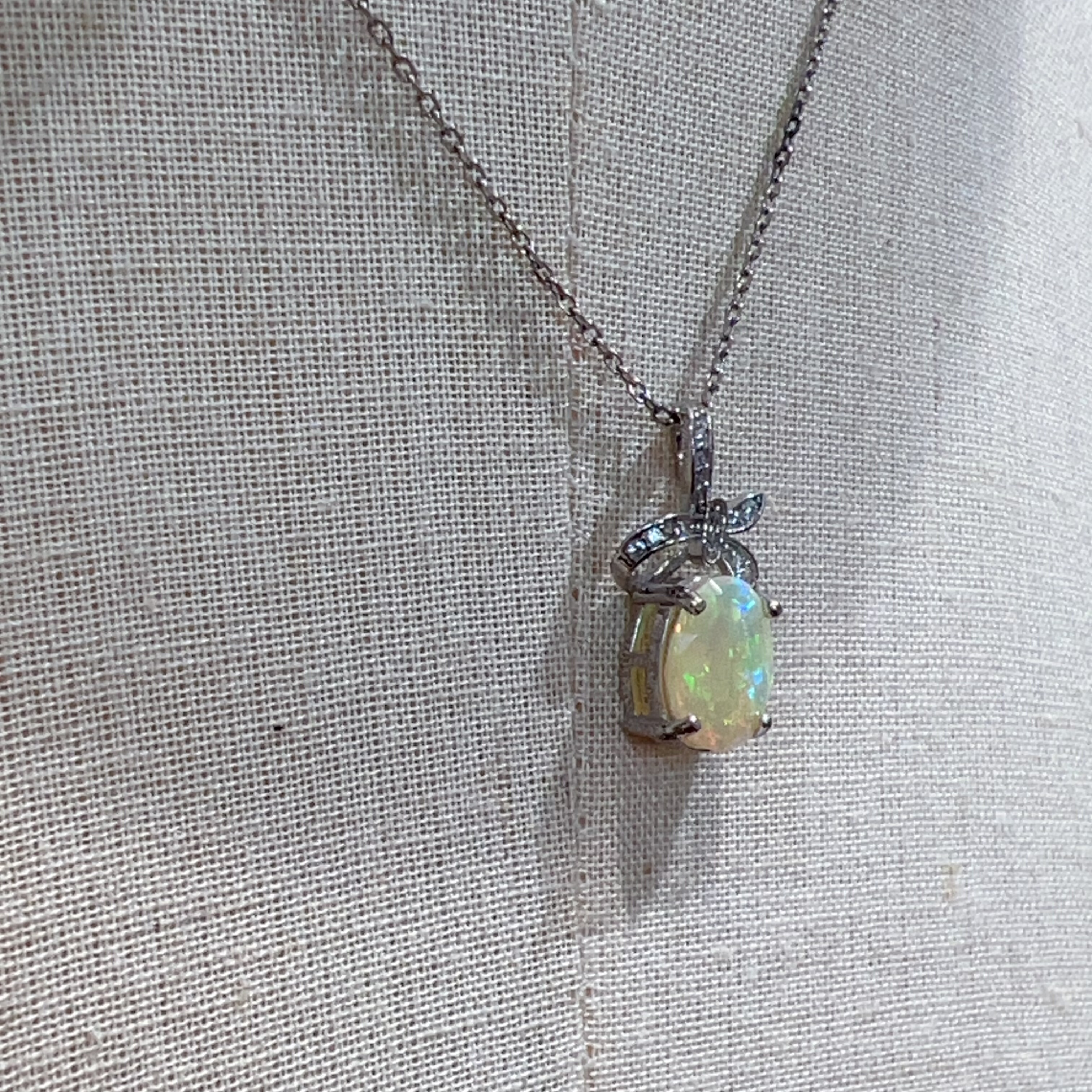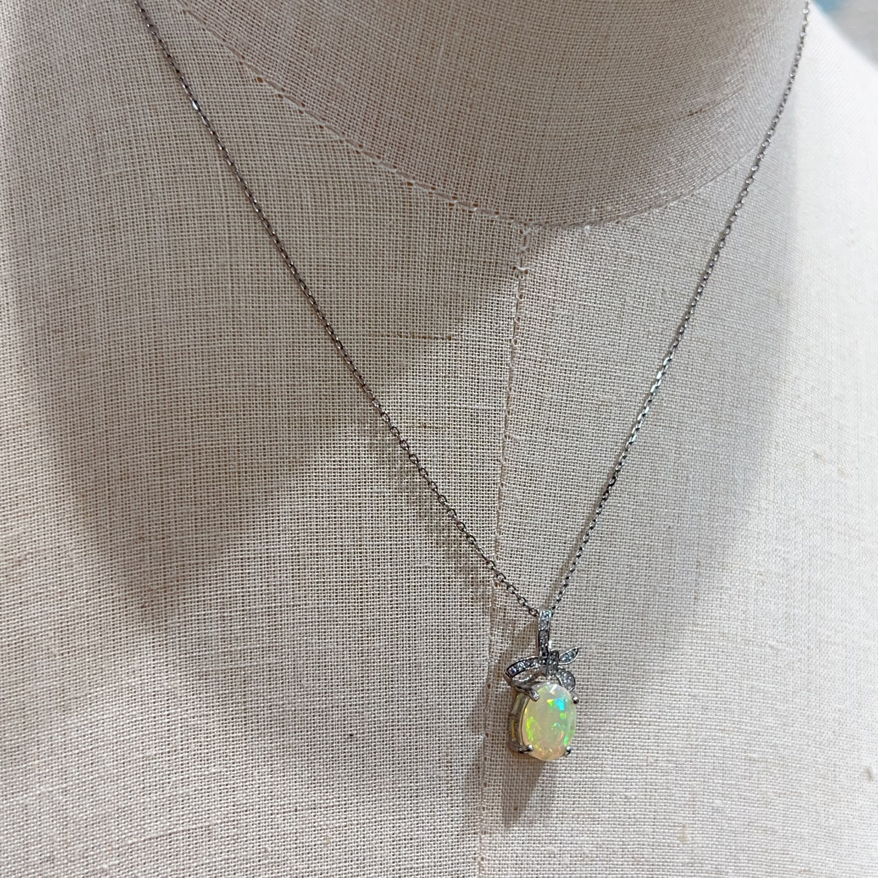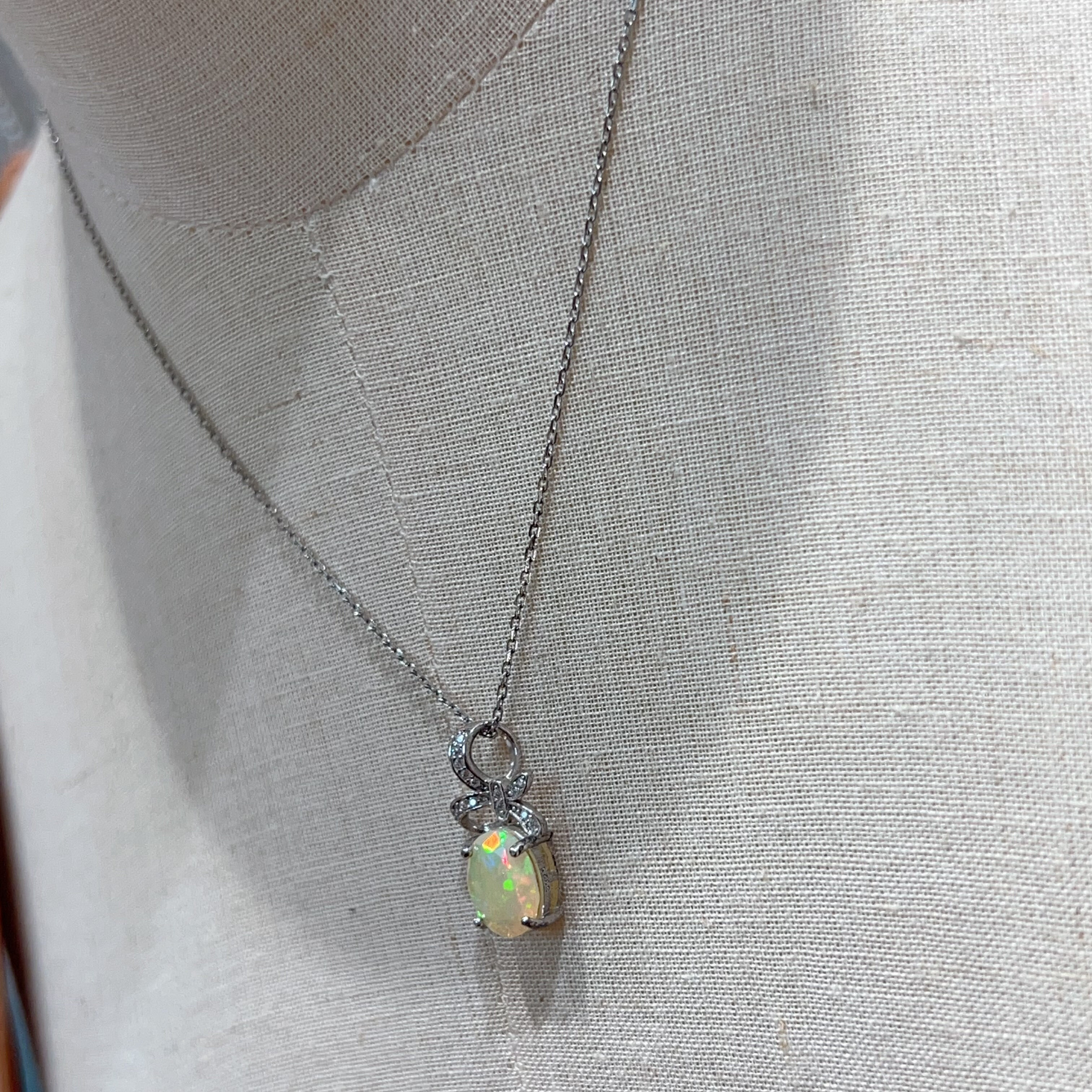 天然白欧泊复古项链女小众设计感轻奢简约百搭925银锁骨链蛋白石