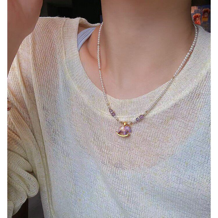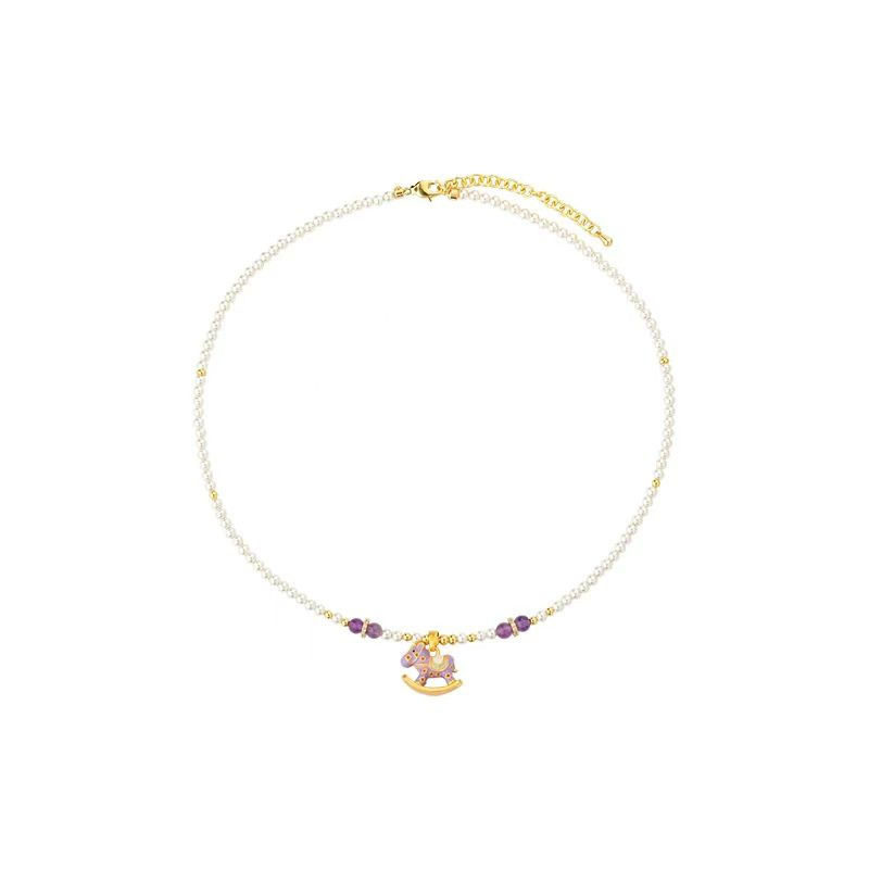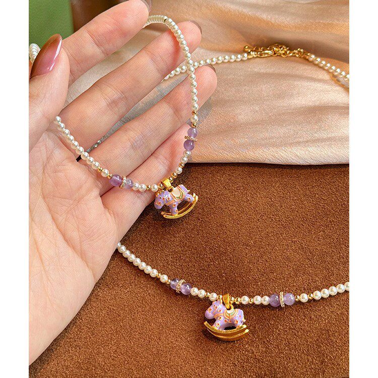 施家珍珠紫色小马吊坠项链配饰女马年轻奢气质网红时尚锁骨链颈链