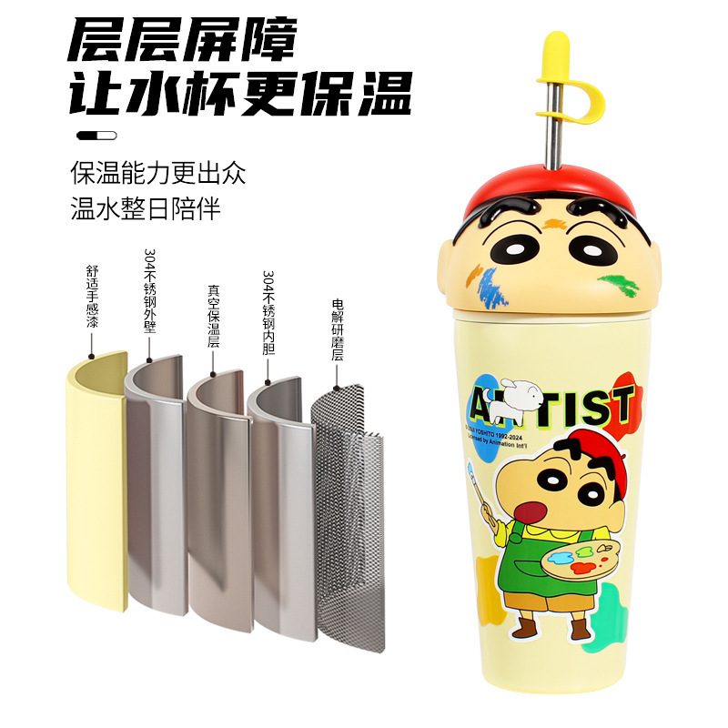 日本品质蜡笔小新保温杯高颜值女可爱水杯不锈钢大容量加厚便携家