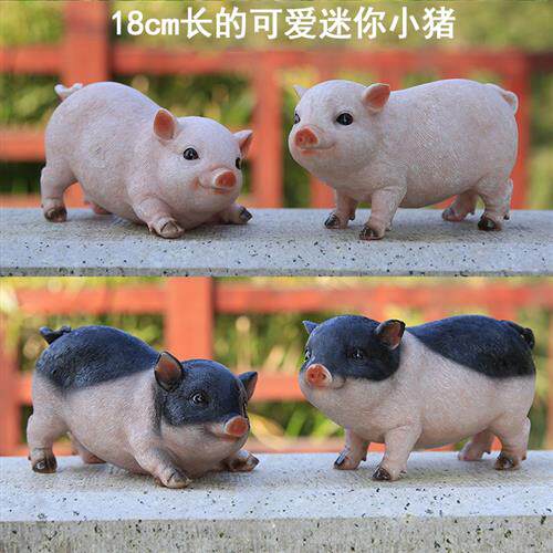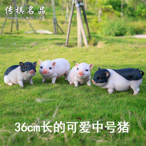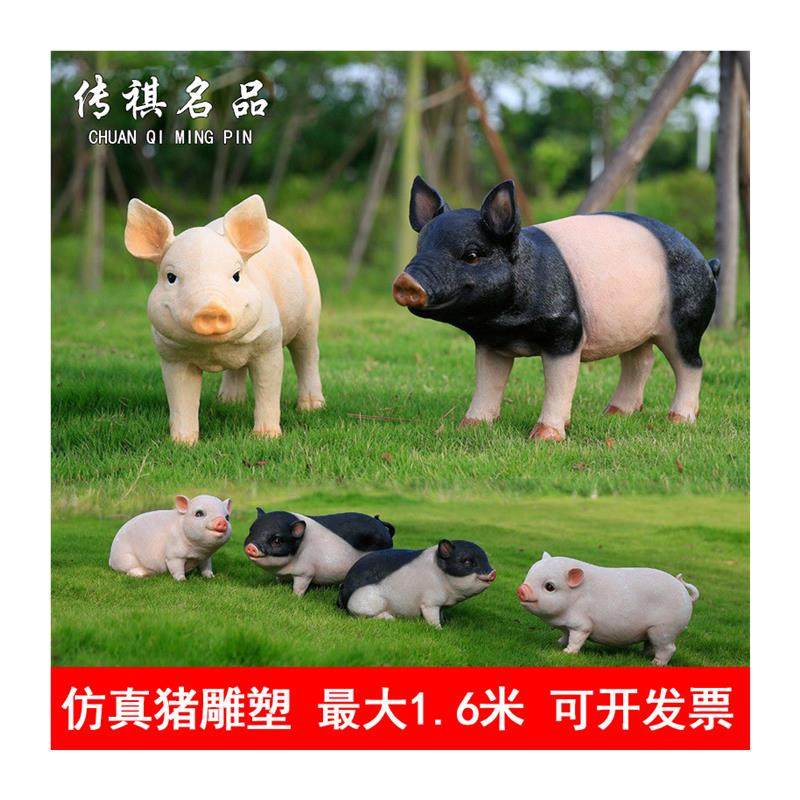 花园超市动物假猪装饰玻璃钢仿真小猪雕塑摆件树脂两头乌黑猪模型
