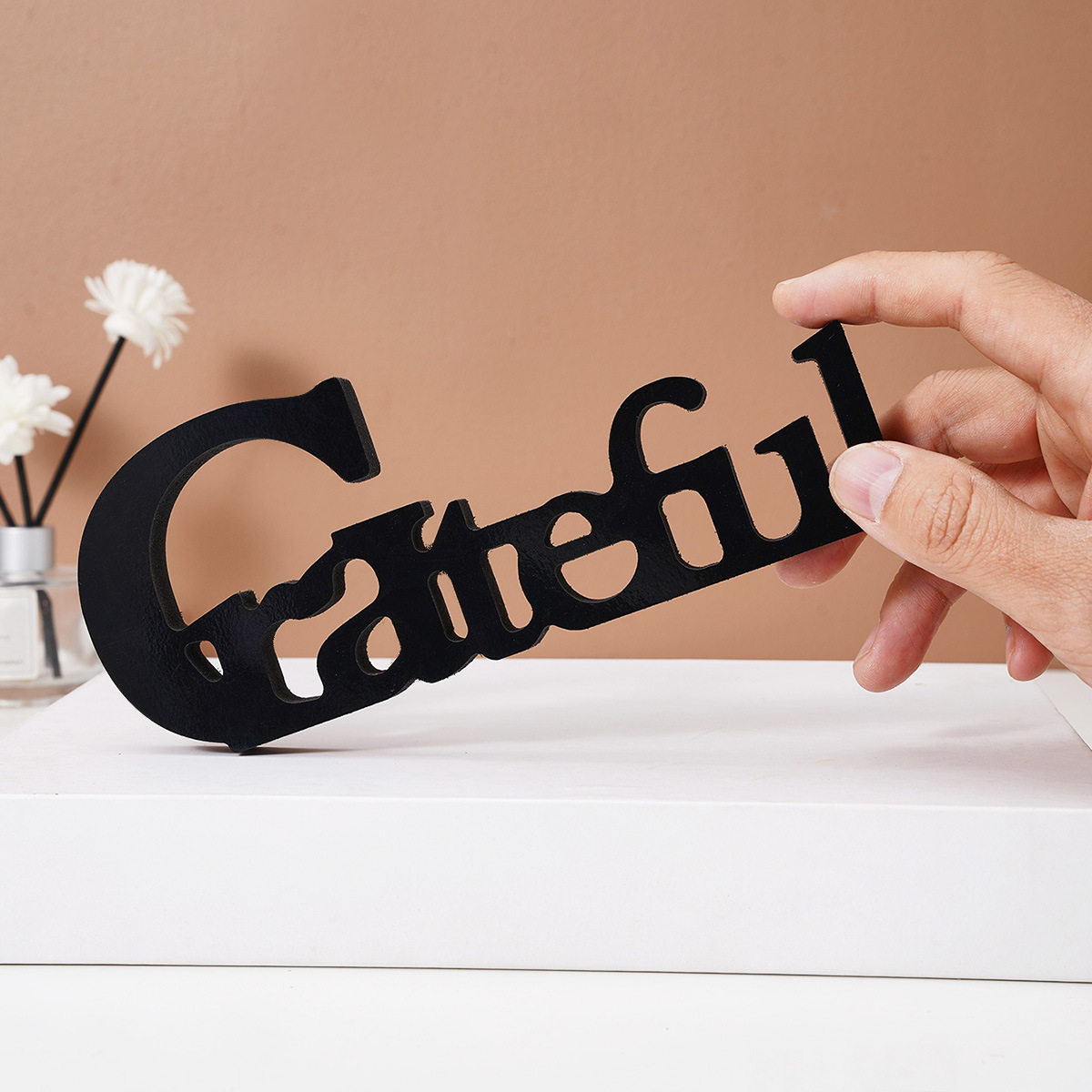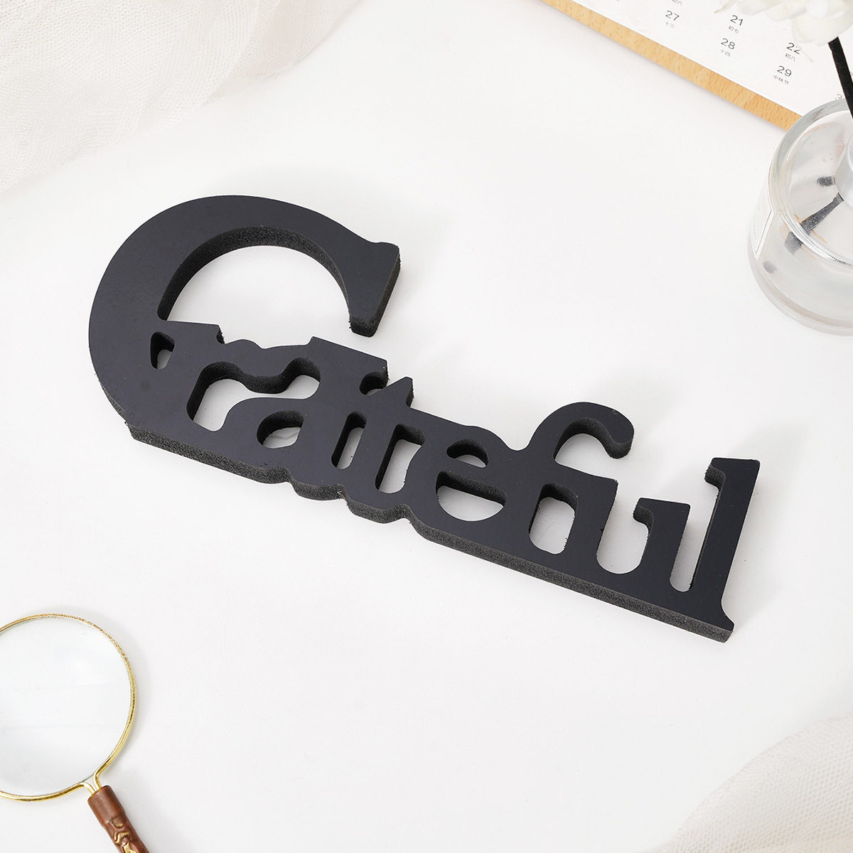 简约立体黑色雪弗板材质字母Grateful装饰节日庆典家居桌面装饰摆