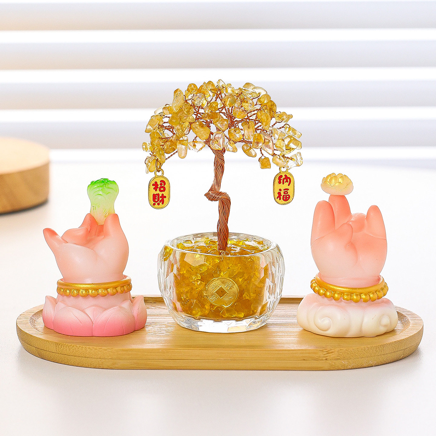 「福禄双全」玄学胖fufu佛手工位情绪稳定神器桌面解压小摆件车载