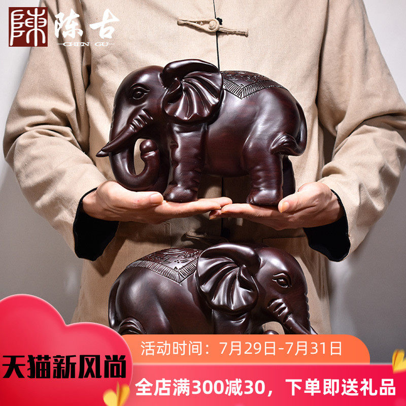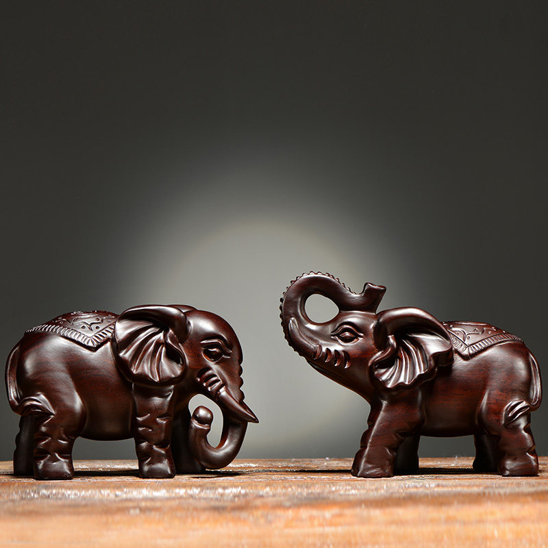 热销黑檀木雕大象摆件实木大号对象红木家居客厅玄关办公室装饰工