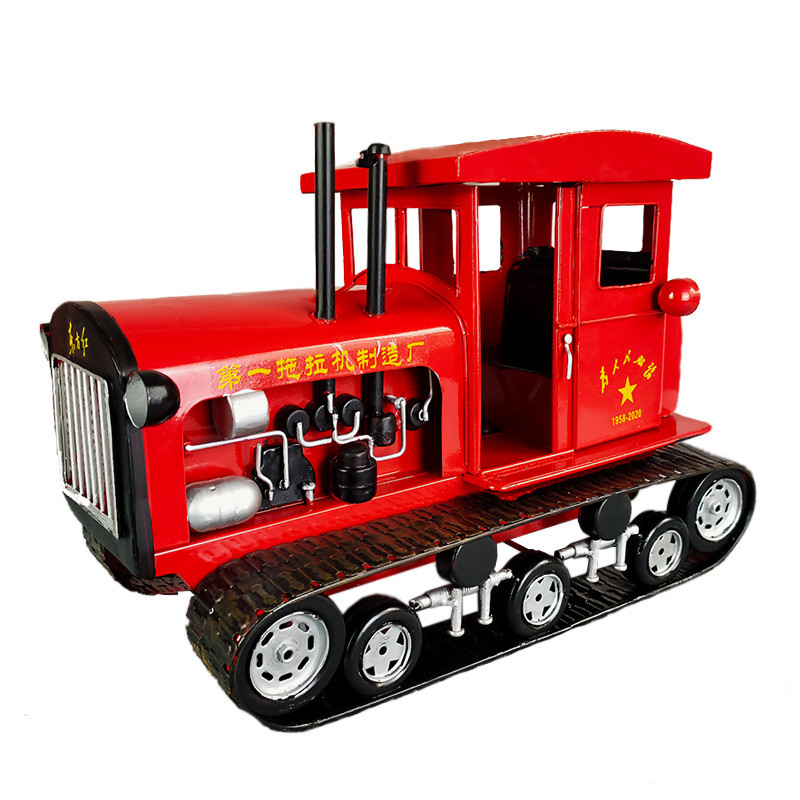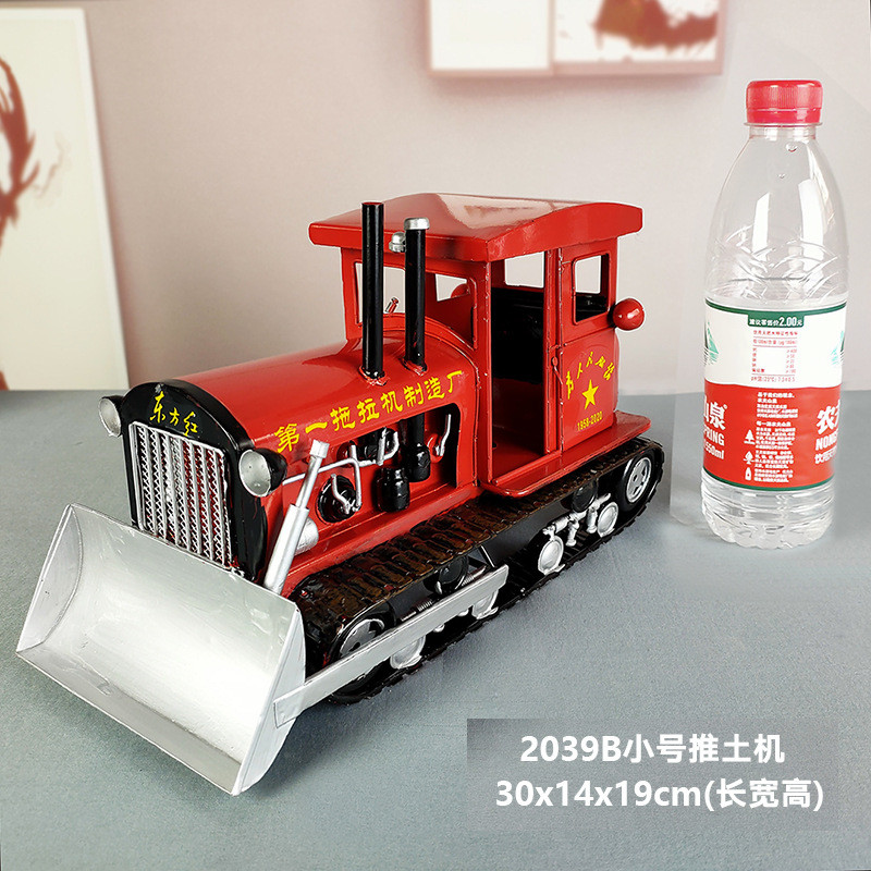 热销东方红履带拖拉机模型摆件复古铁艺推土机链轨手工道具装饰工