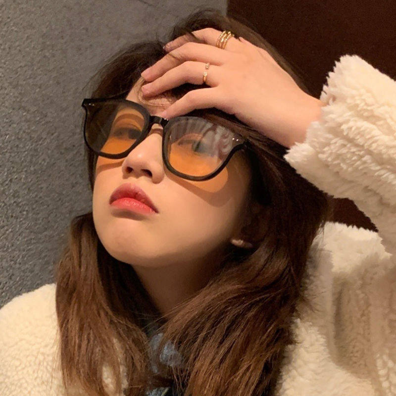 2025新款潮Jennie同款小脸lang橘黄色复古墨镜男网红黑色太阳镜女