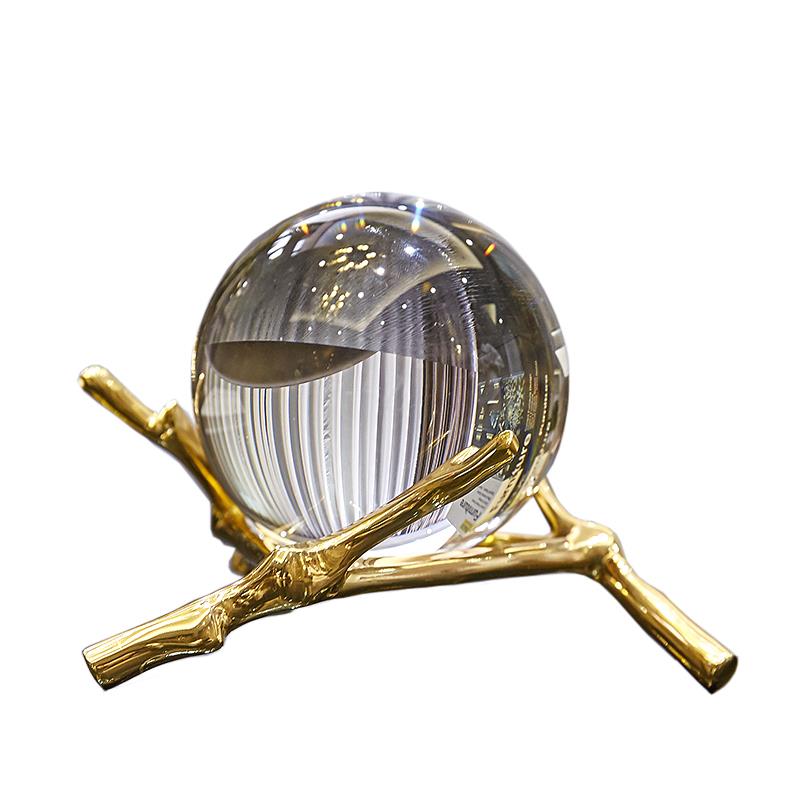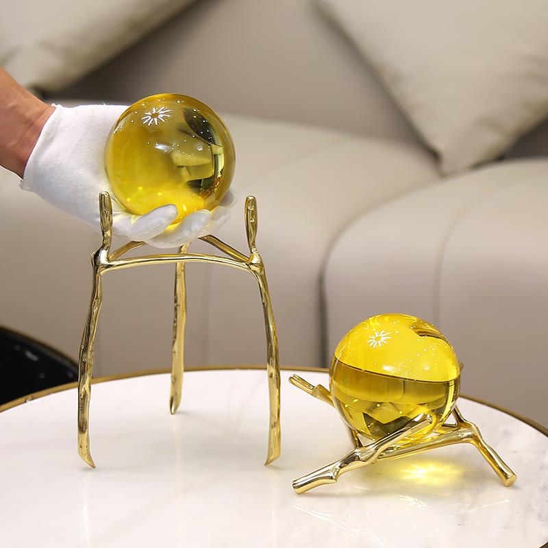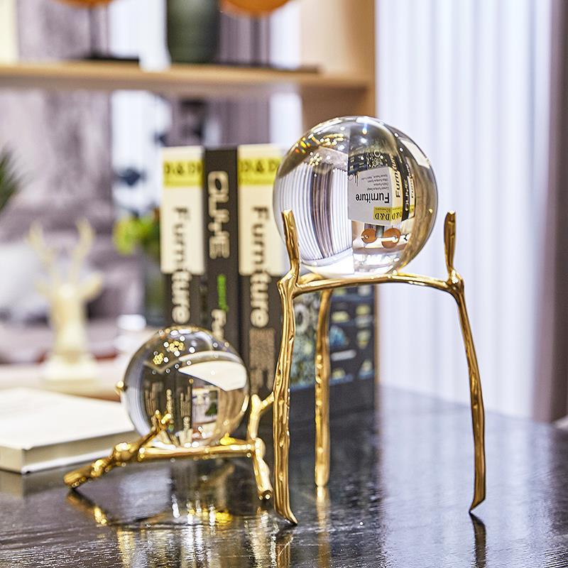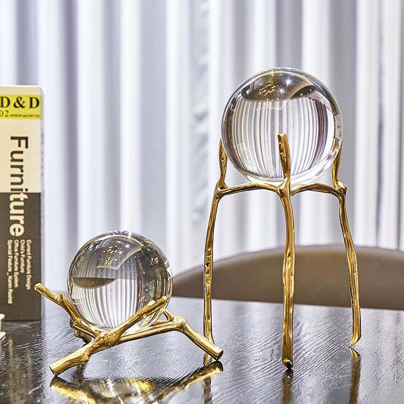 轻奢纯铜招财水晶球摆件客厅电视柜酒柜办公室乔迁礼品装饰品摆设