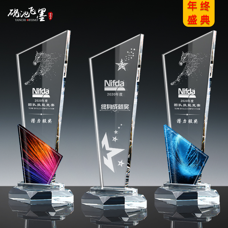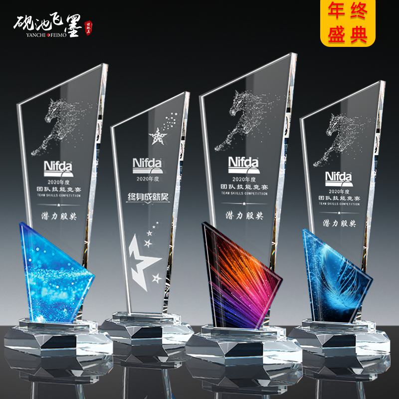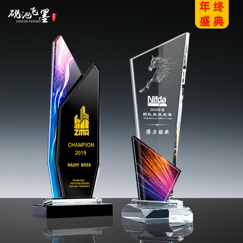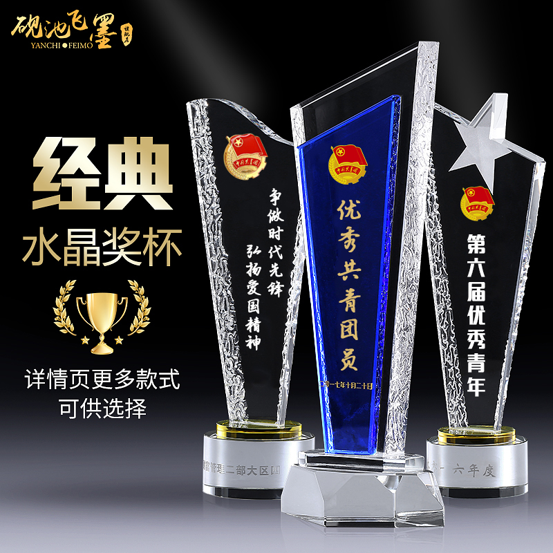 水晶奖杯定制奖牌定做五四团徽奖杯五角星玻璃牌公司优秀员工荣誉