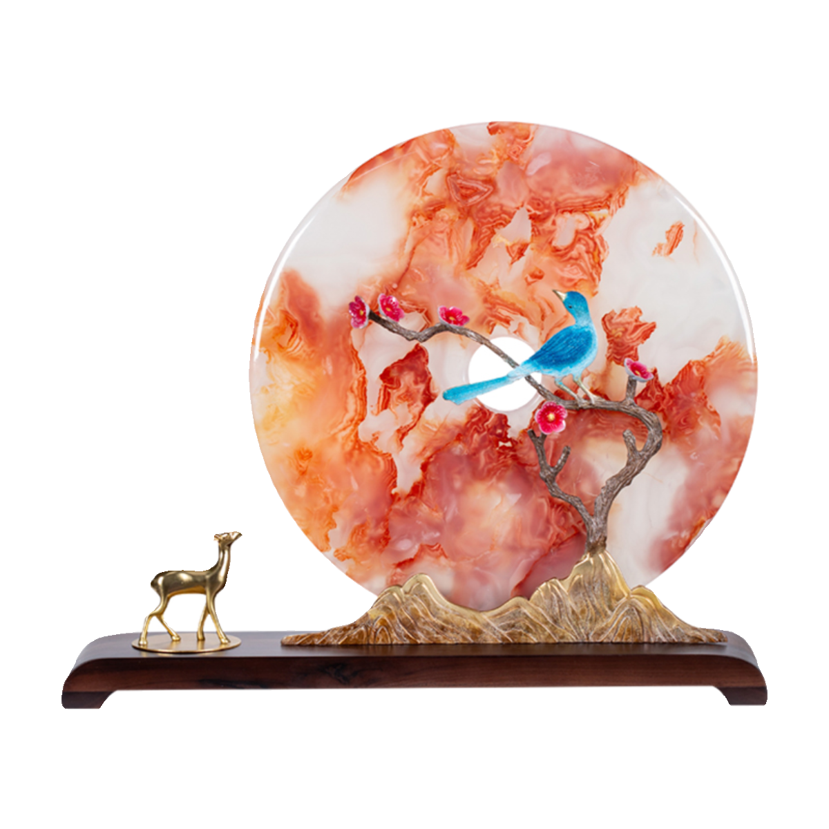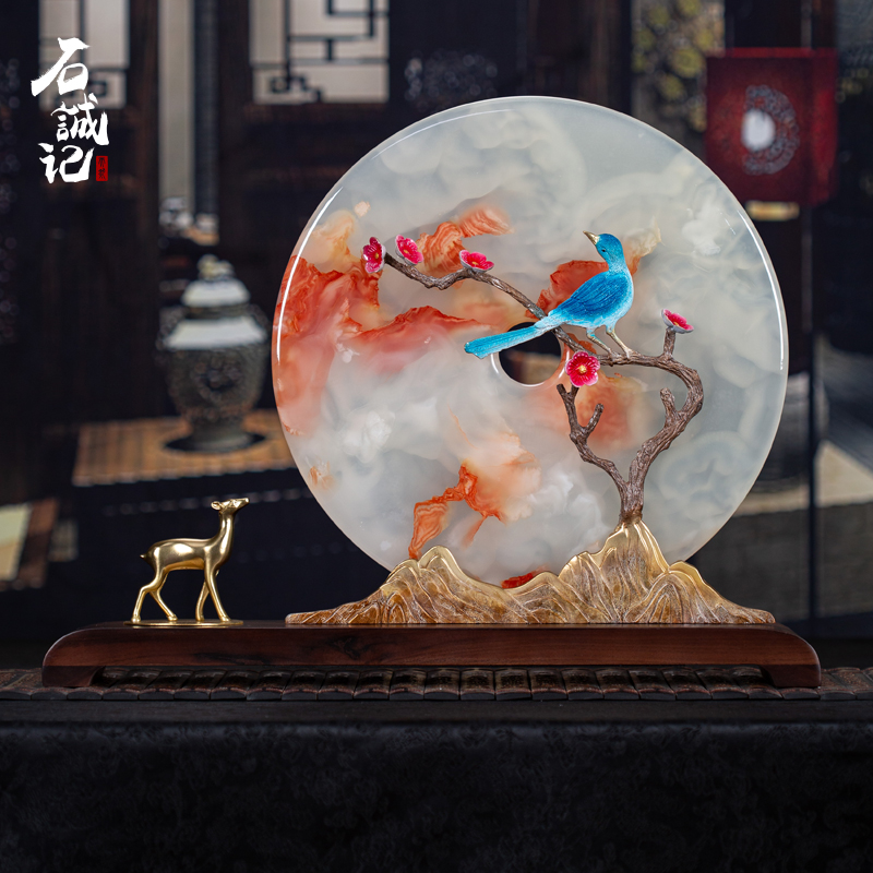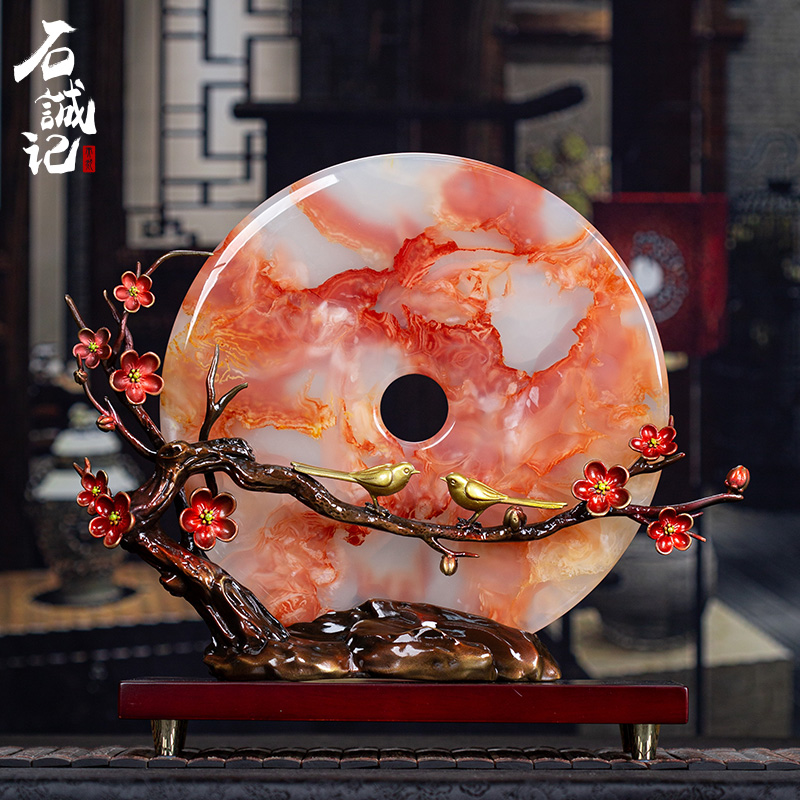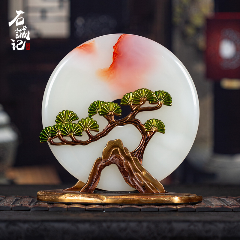 石诚记中式玉石平安扣铜摆件一鹿平安创意高档礼品桌面玄关装饰品