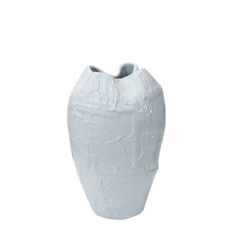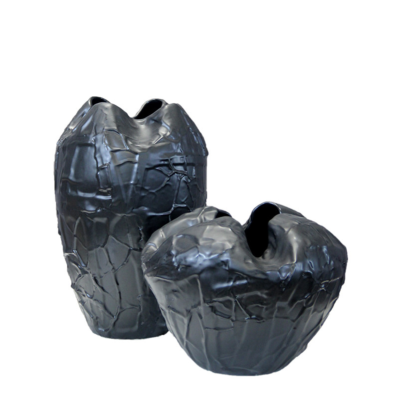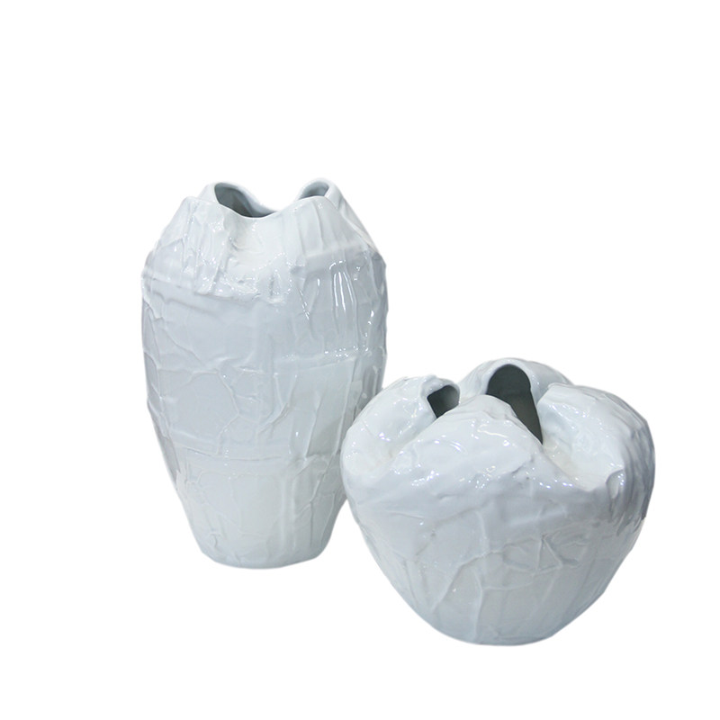 现代简约家居f软装样板房间设计师款黑白色陶瓷褶皱大花器花瓶摆