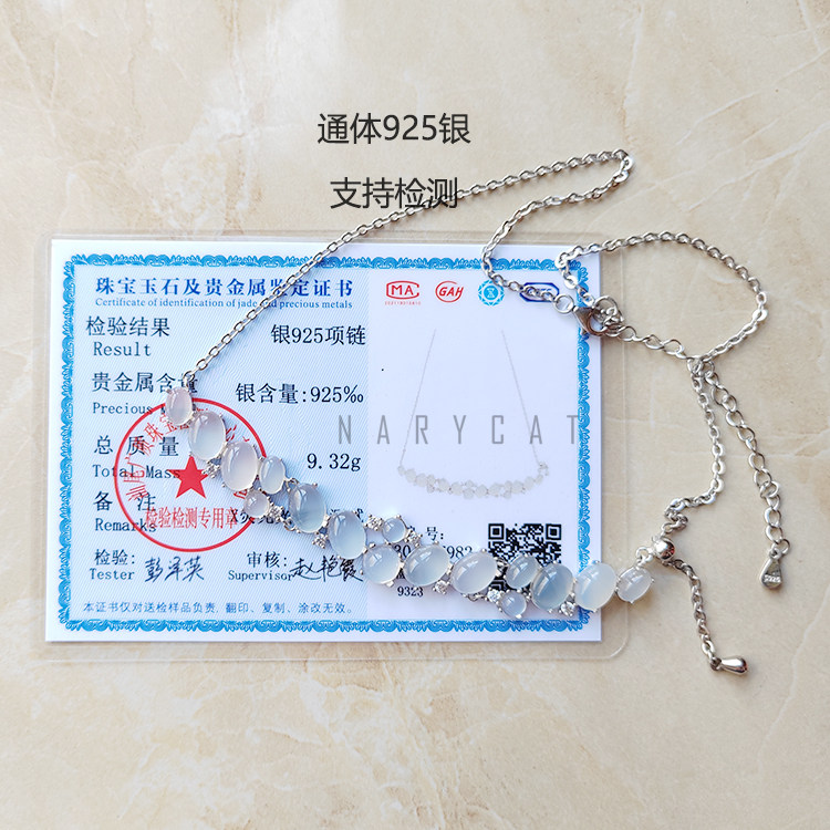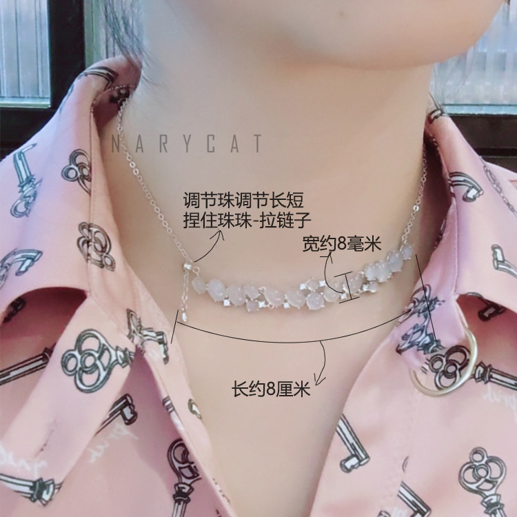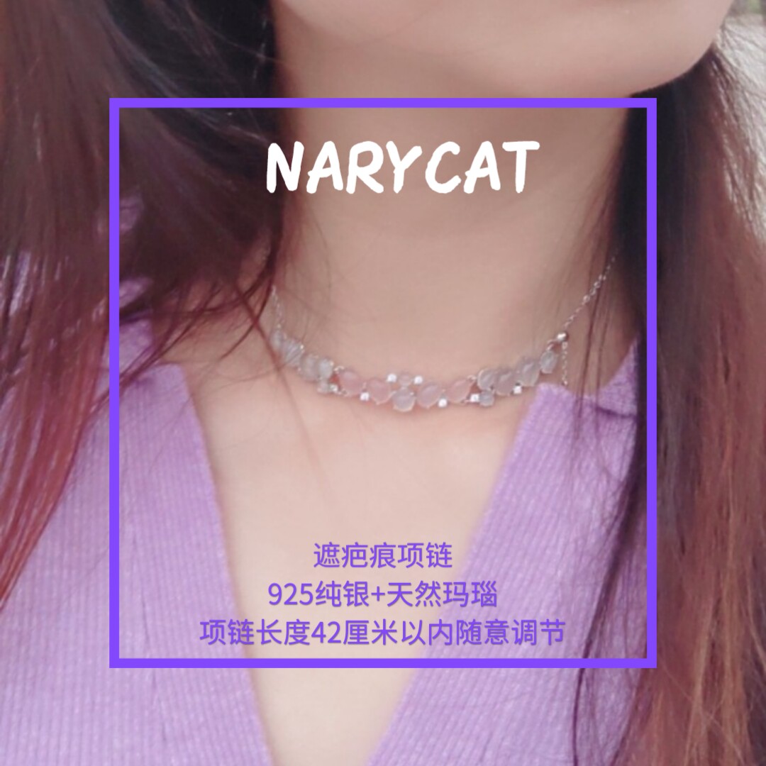 Narycat定制术后遮疤痕项链脖颈原创S925纯银白玛瑙随意调节长短