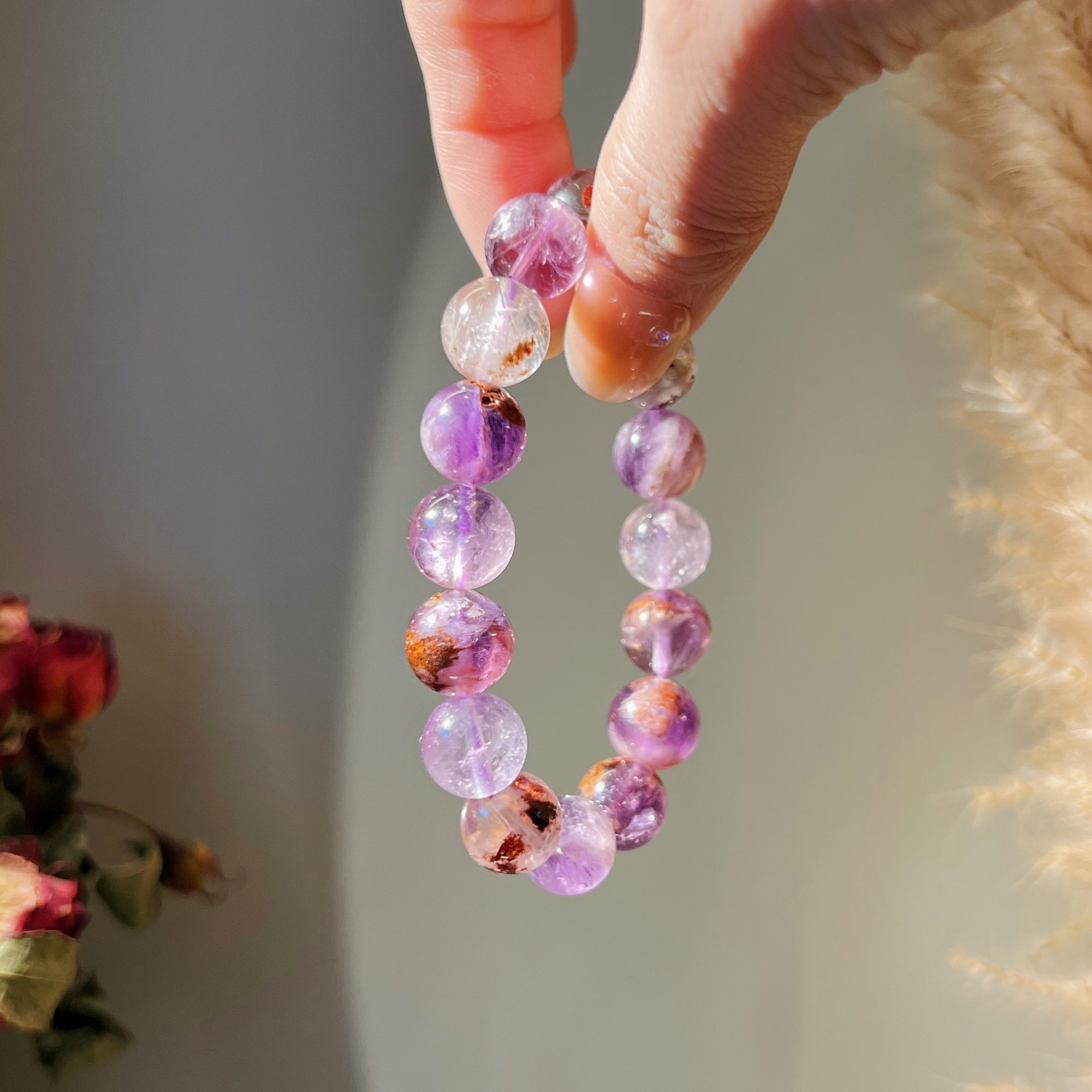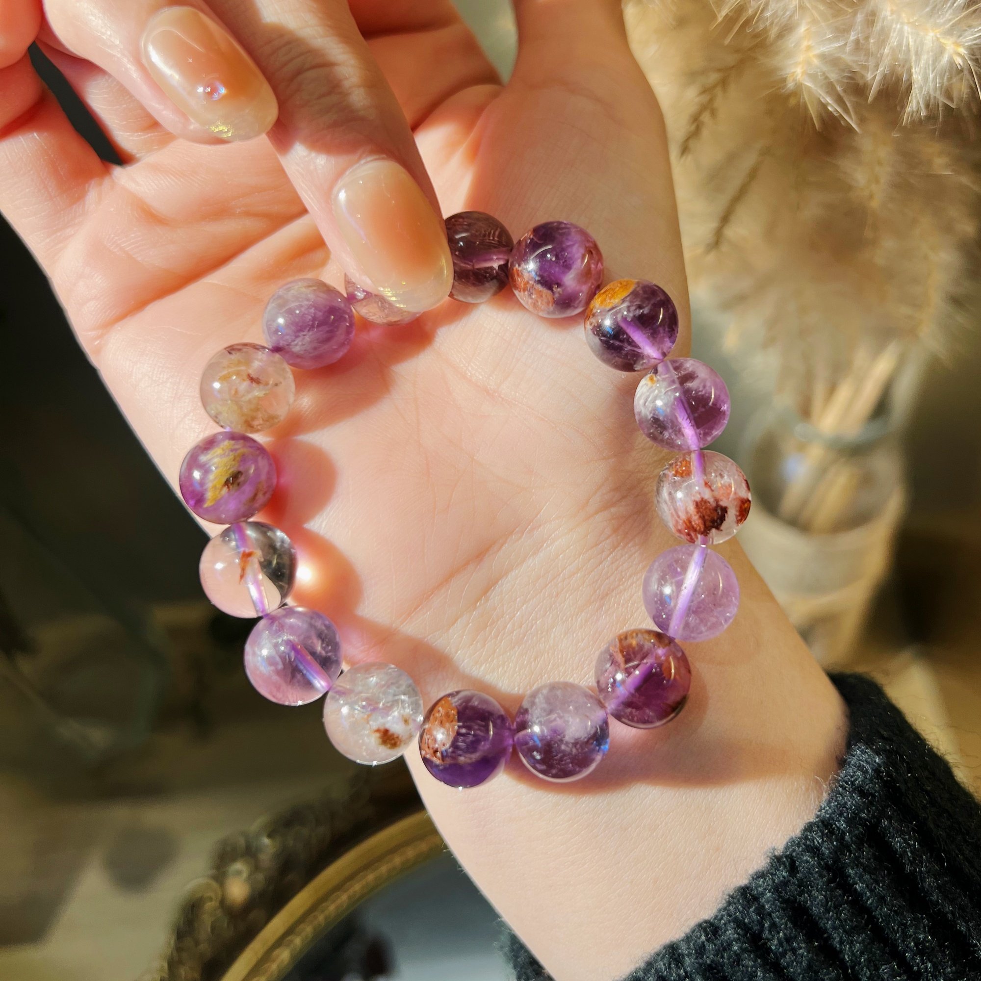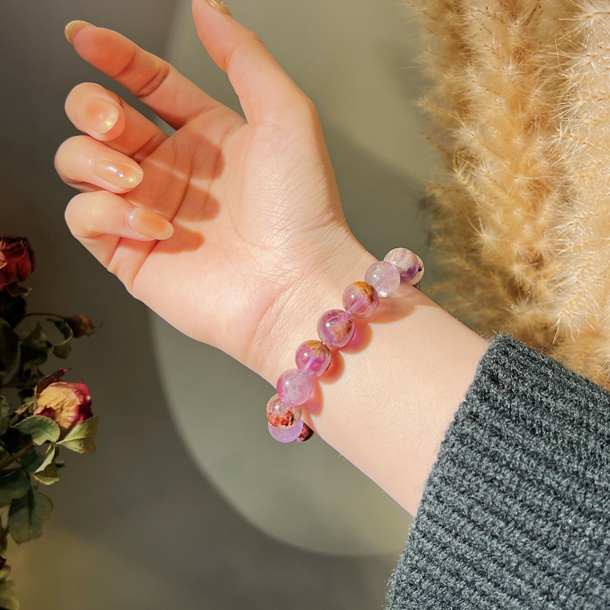 天然紫幽灵水晶手串手链双色金字塔四矿共生紫色水晶手链饰品