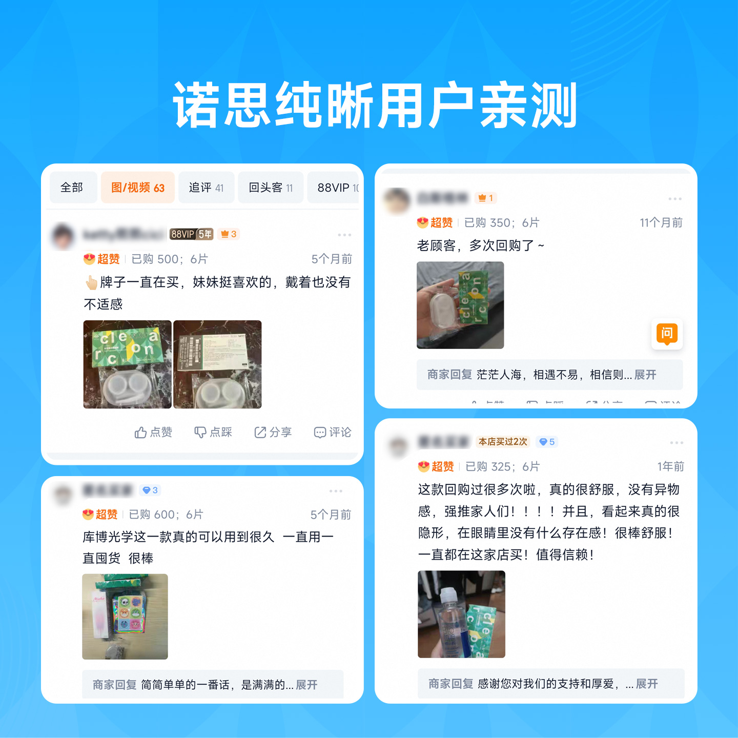 库博光学隐形眼镜月抛6片盒纯晰超薄近视透明水润高清学生女正品