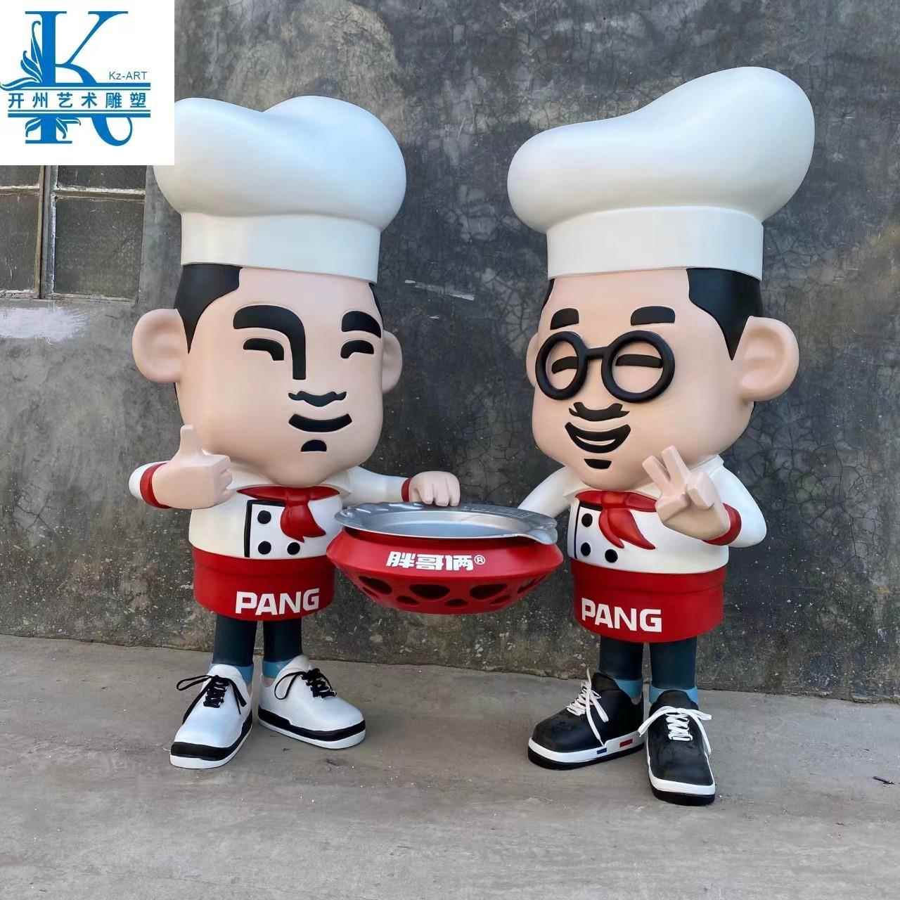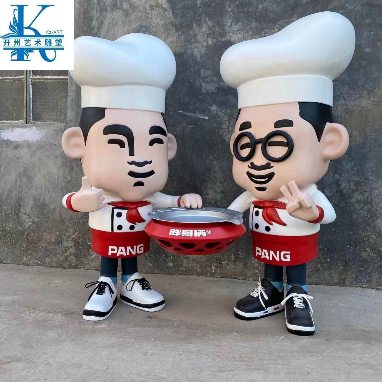 玻璃钢雕塑厂家出售火锅店厨师大型艺术美陈摆设落地卡通公仔模型