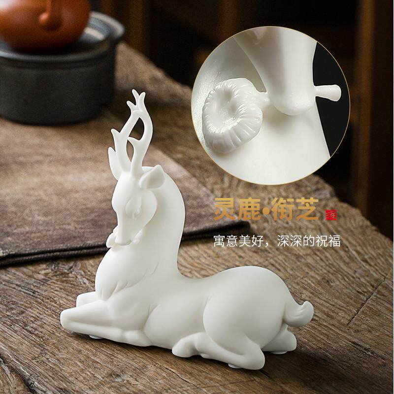 东方泥土 陶瓷鹿摆件 家居客厅茶几桌面装饰工艺品办公室小鹿摆设