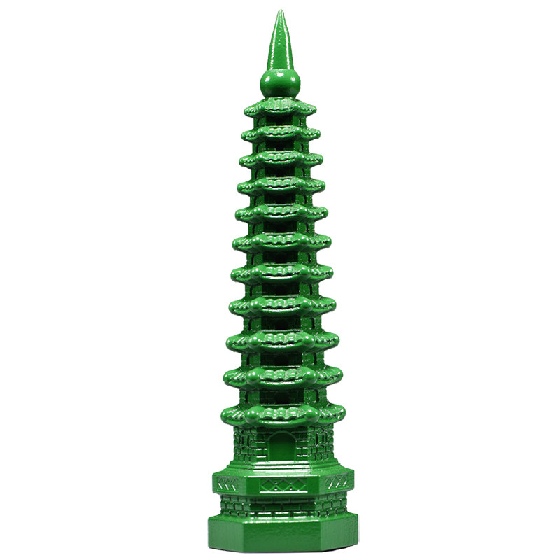 绿色木质雕刻11层文昌塔摆件9层13层文昌塔客厅书桌装饰工艺品
