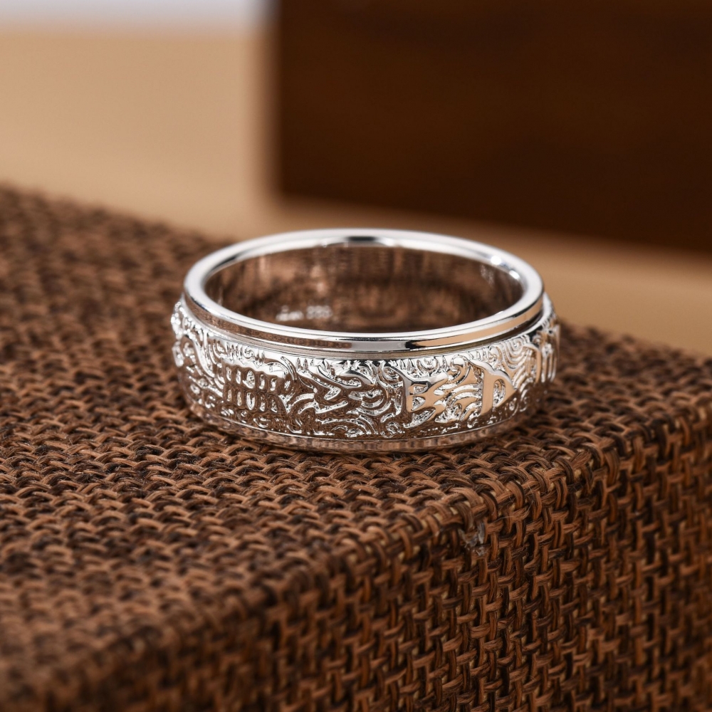 可转动戒指六字真言纯银S999戒指招财潮解压学生旋转个性尾戒