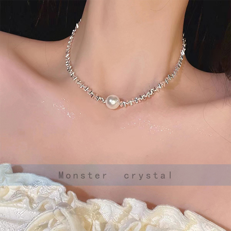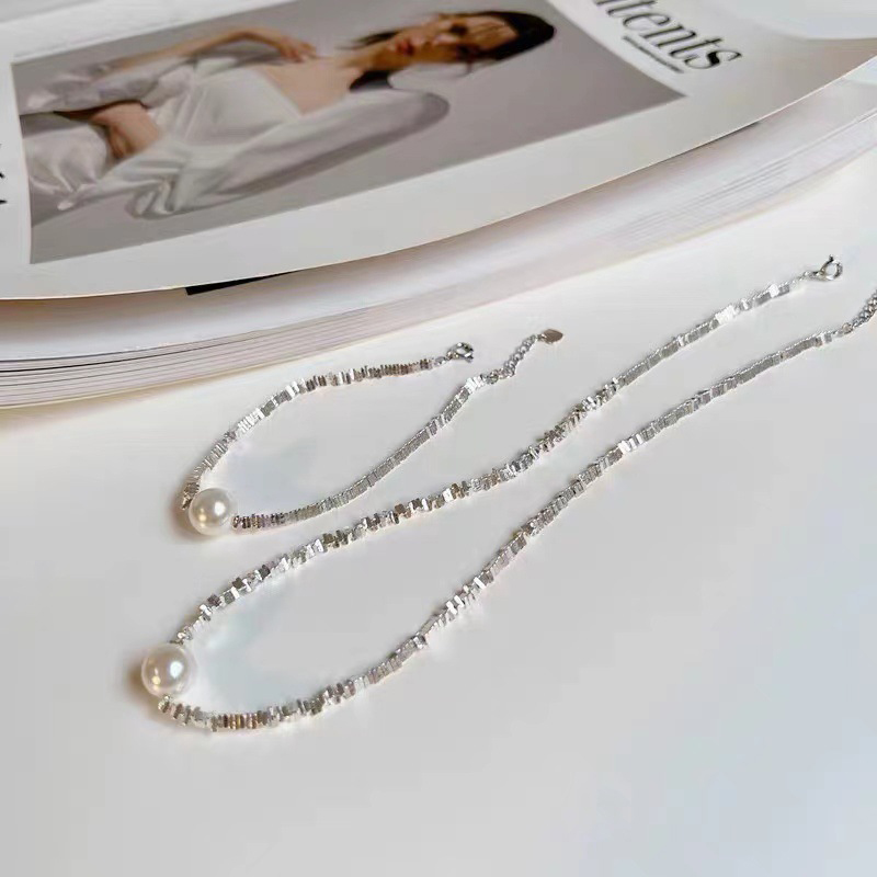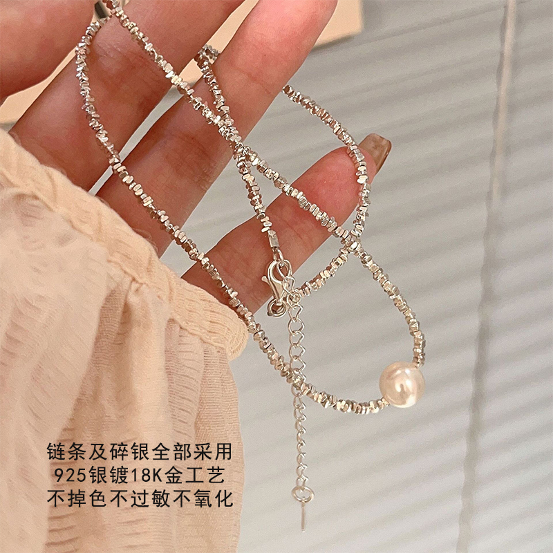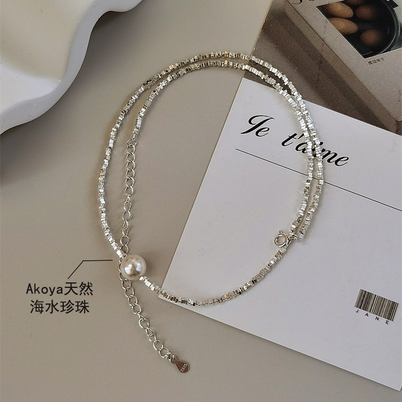 Akoya碎银几两海水珍珠项链艾迪生925银小众设计施家锁骨链爆闪