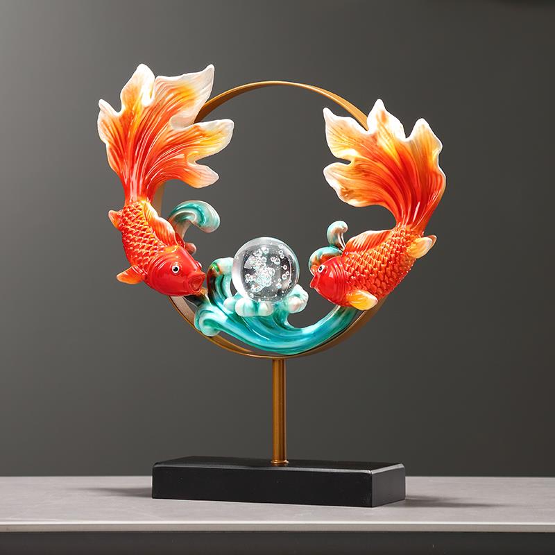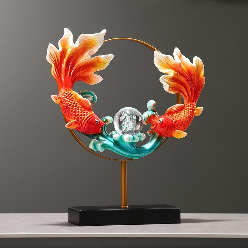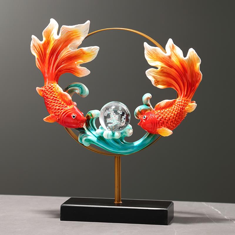 新中式年年有鱼双鱼戏珠桌面摆件现代家居饰品客厅玄关乔迁礼品
