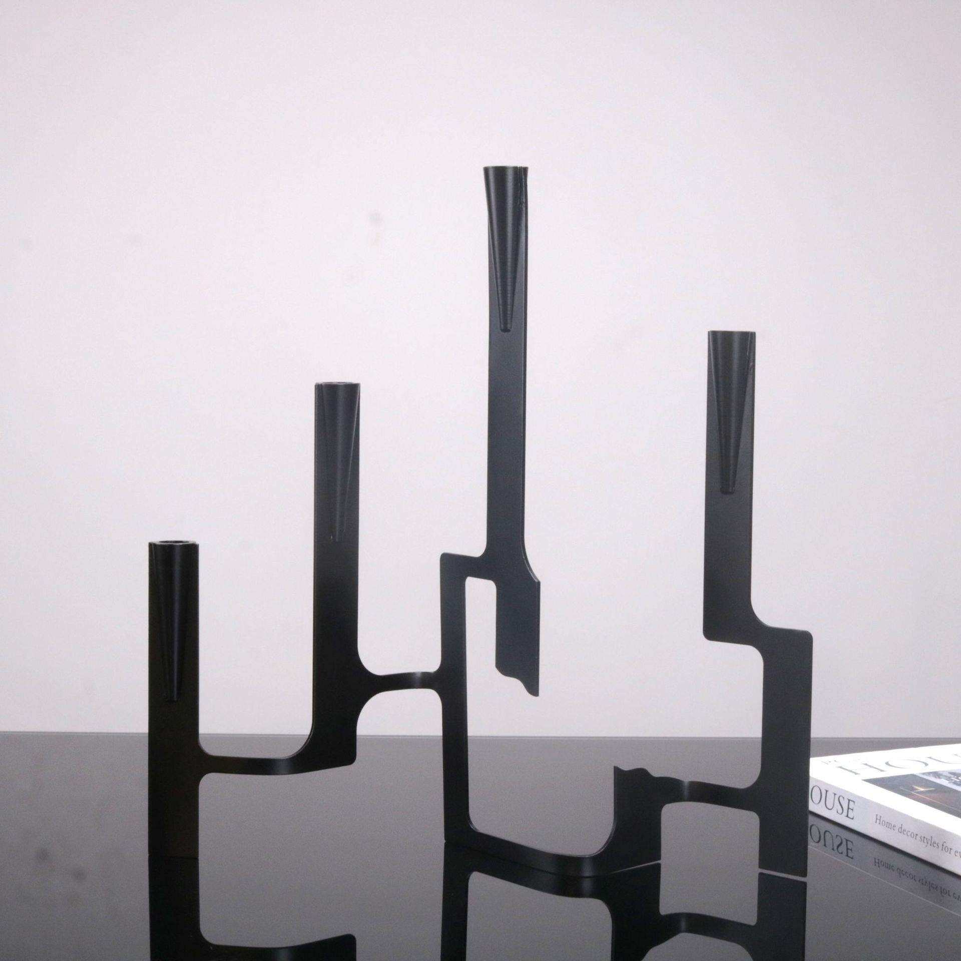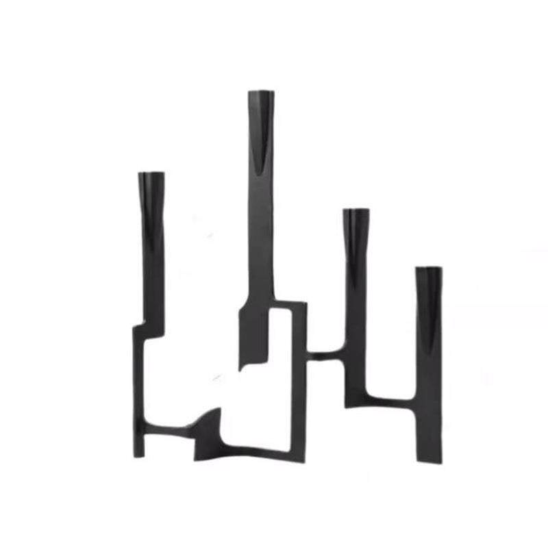 极简现代黑色金属几何创意烛台样板间售楼处室内餐桌面装饰品摆件