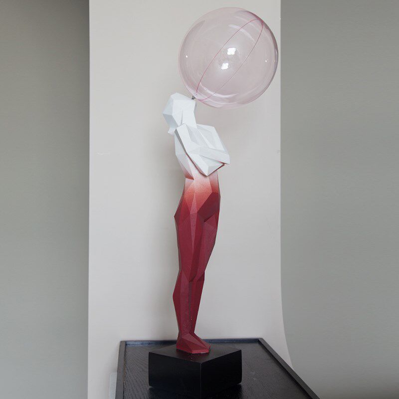 吹泡泡女孩红色渐变人物雕塑雕像客厅艺术摆件美容院医美软装饰大