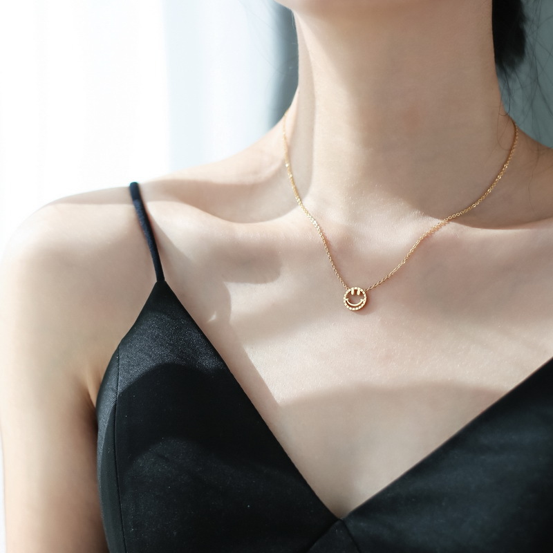 金色笑脸锁骨链短项链女气质简约网红潮时尚小众冷淡风闺蜜设计感