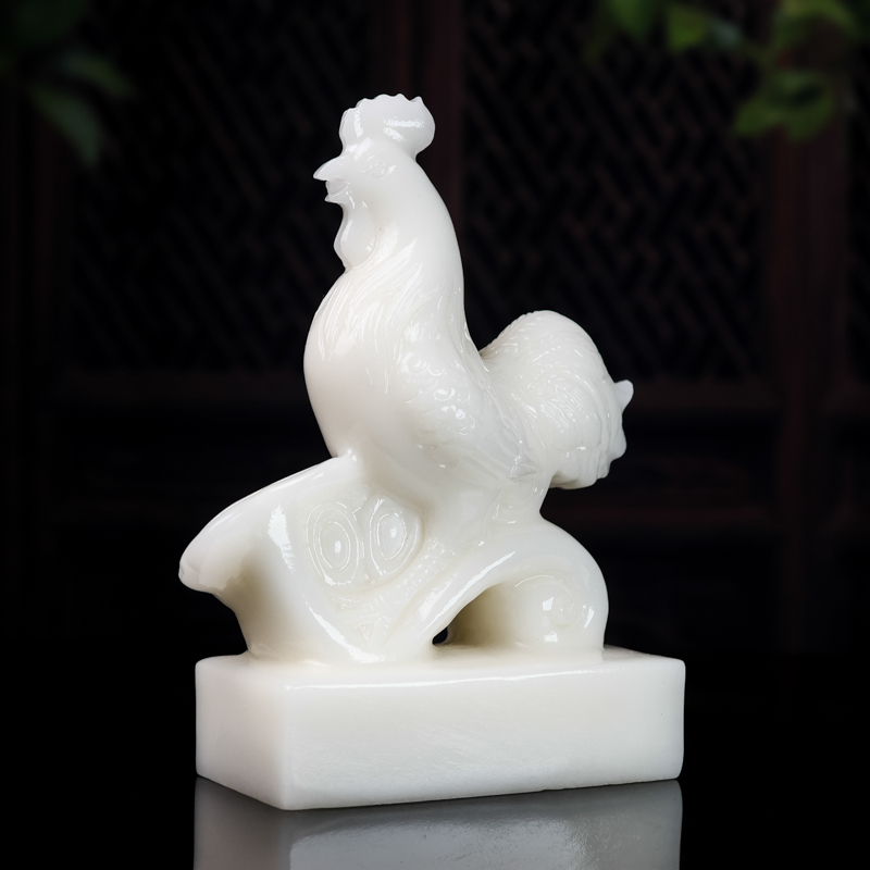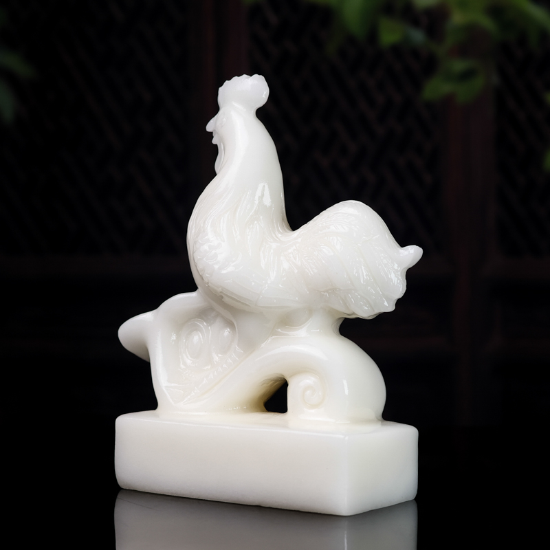 天然白玉鸡祥如意摆件玉石大公鸡摆设生肖鸡客厅家居玄关乔迁送礼