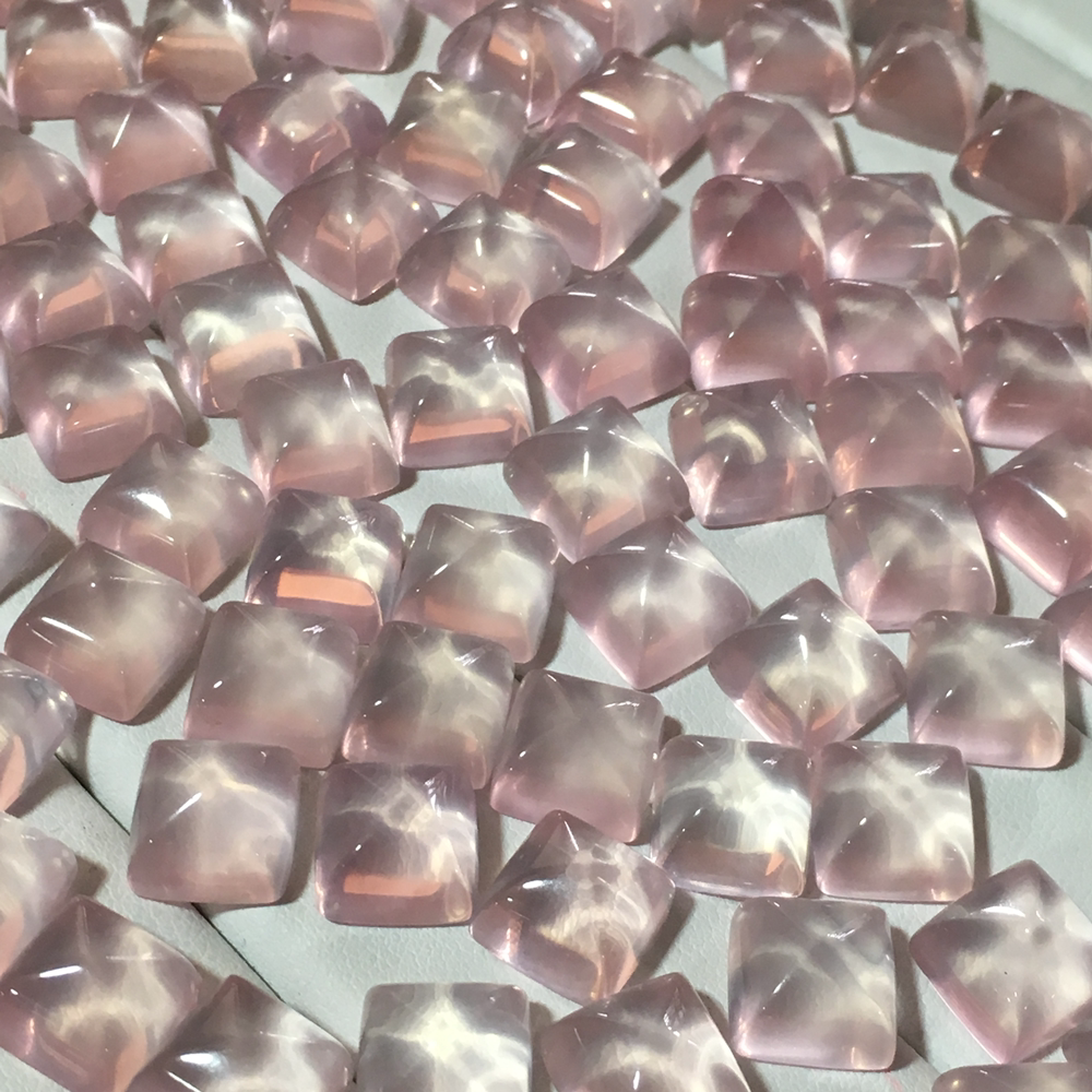 糖塔!天然粉水晶方形糖塔裸石可镶嵌编绳绕线戒指吊坠手链