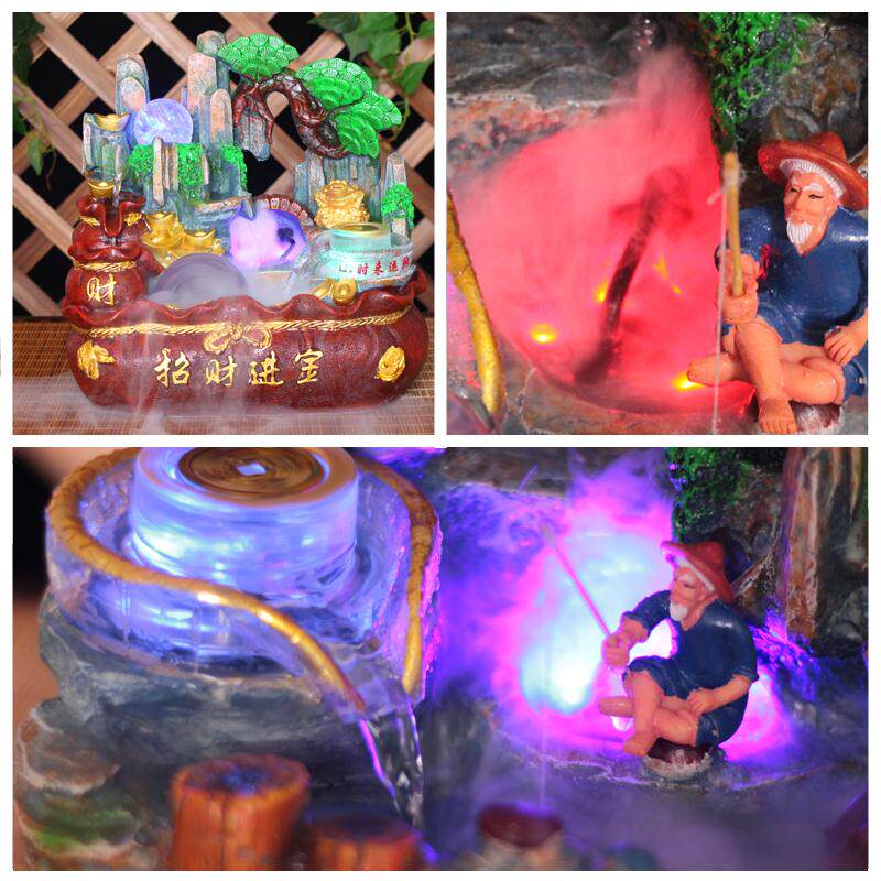 水族造景制雾机流水器摆件起雾气盆景风水轮假山雾化器.鱼缸造雾