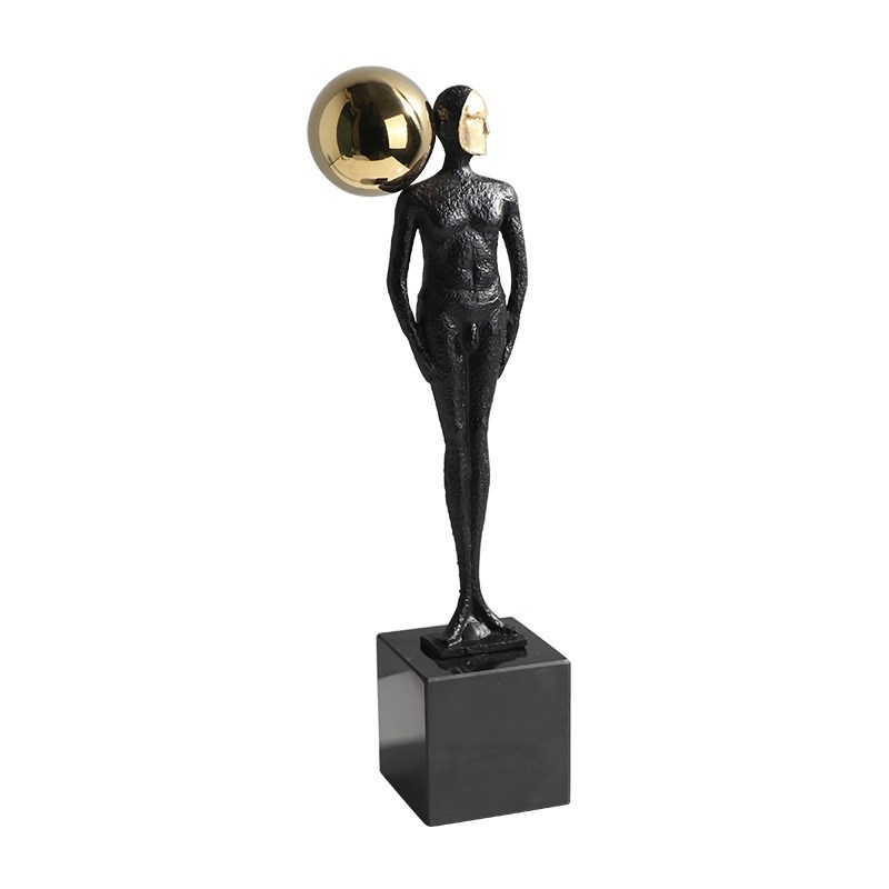 蒙面金属人物雕塑现代轻奢大理石底座样板房间软装饰品室内摆件