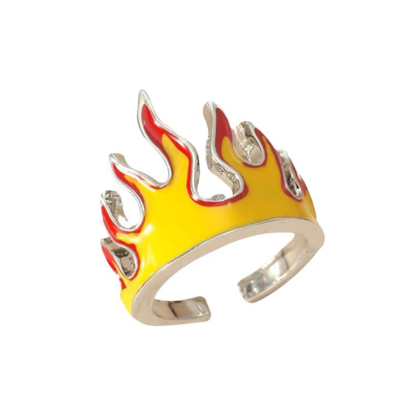 KANZAOswag酷辣滑板少年 ins火焰开口戒指 个性设计情侣指环