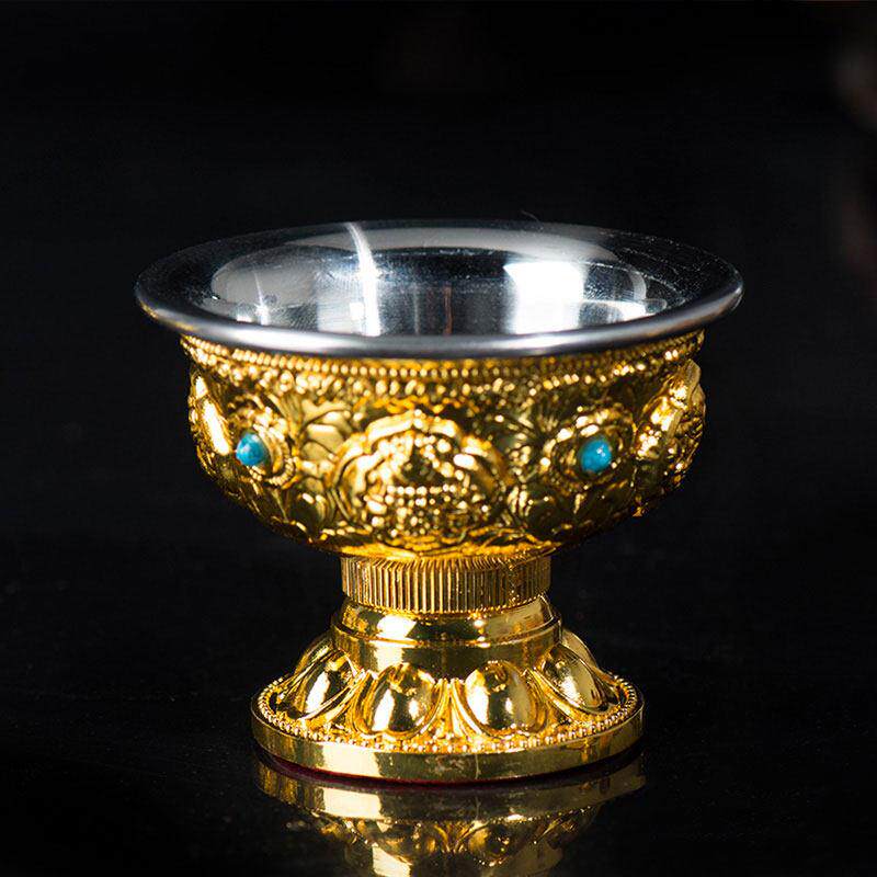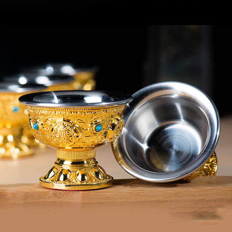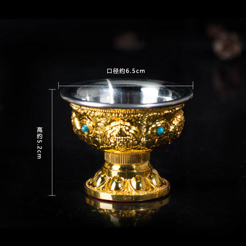 佛前用品 七供圣水杯用品杯 不锈钢内胆水碗铜鎏金八吉祥高脚供杯