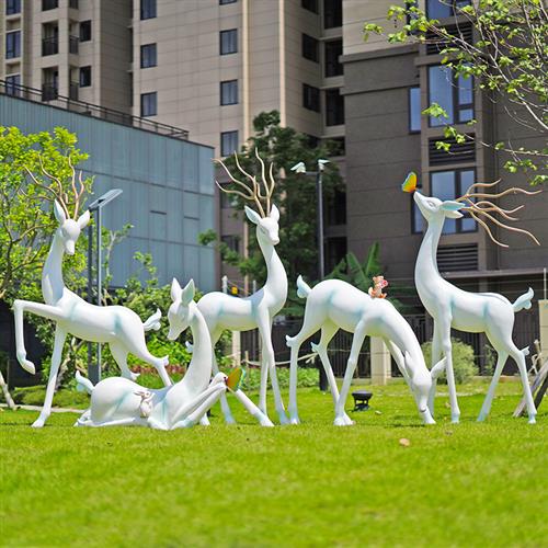 户外抽象梅花鹿玻璃钢雕塑售楼部小区草坪园林白色鹿造景模型摆件