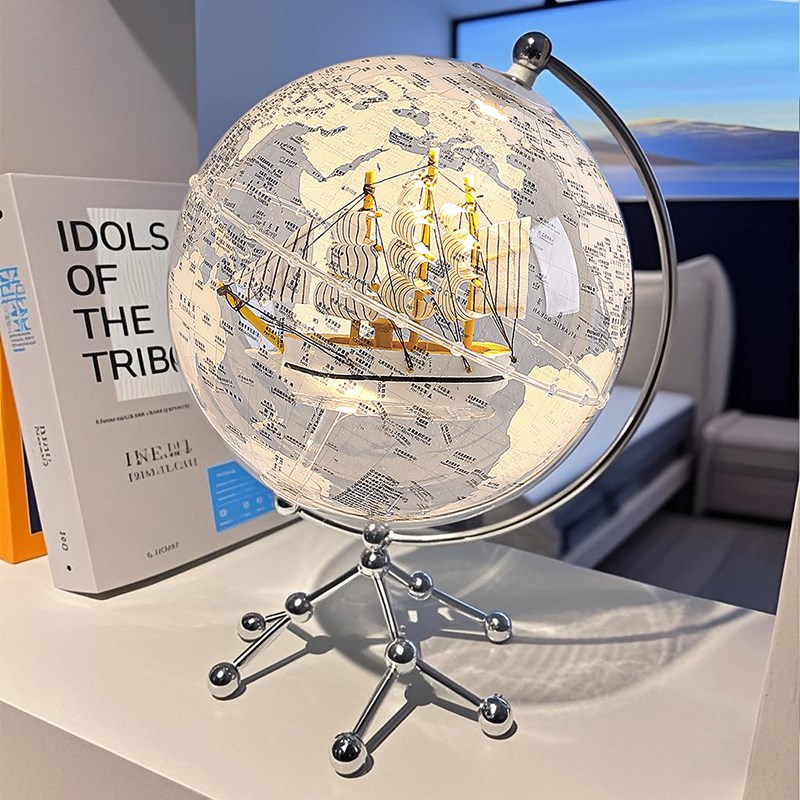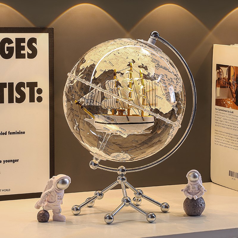 升级款帆船地球仪摆件带灯光轻奢客厅电视柜办公室生日礼物男