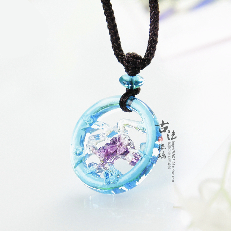古法琉璃坊复古梅花吊坠古风项链配女生汉服月满梅香蓝色琉璃平安