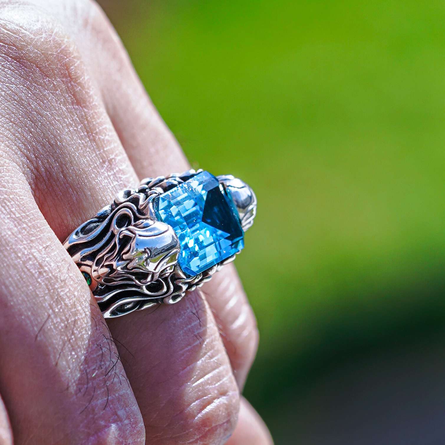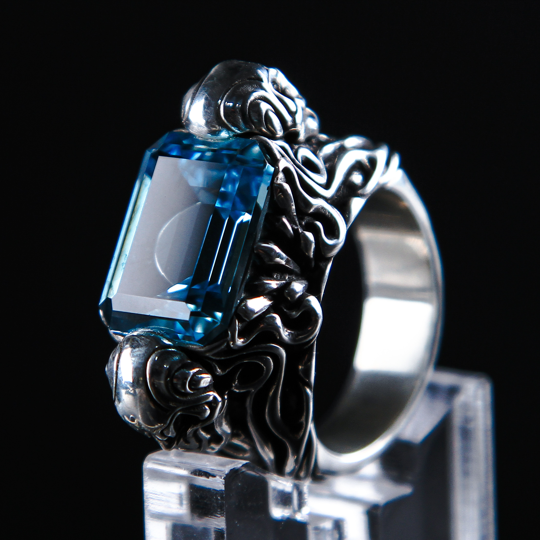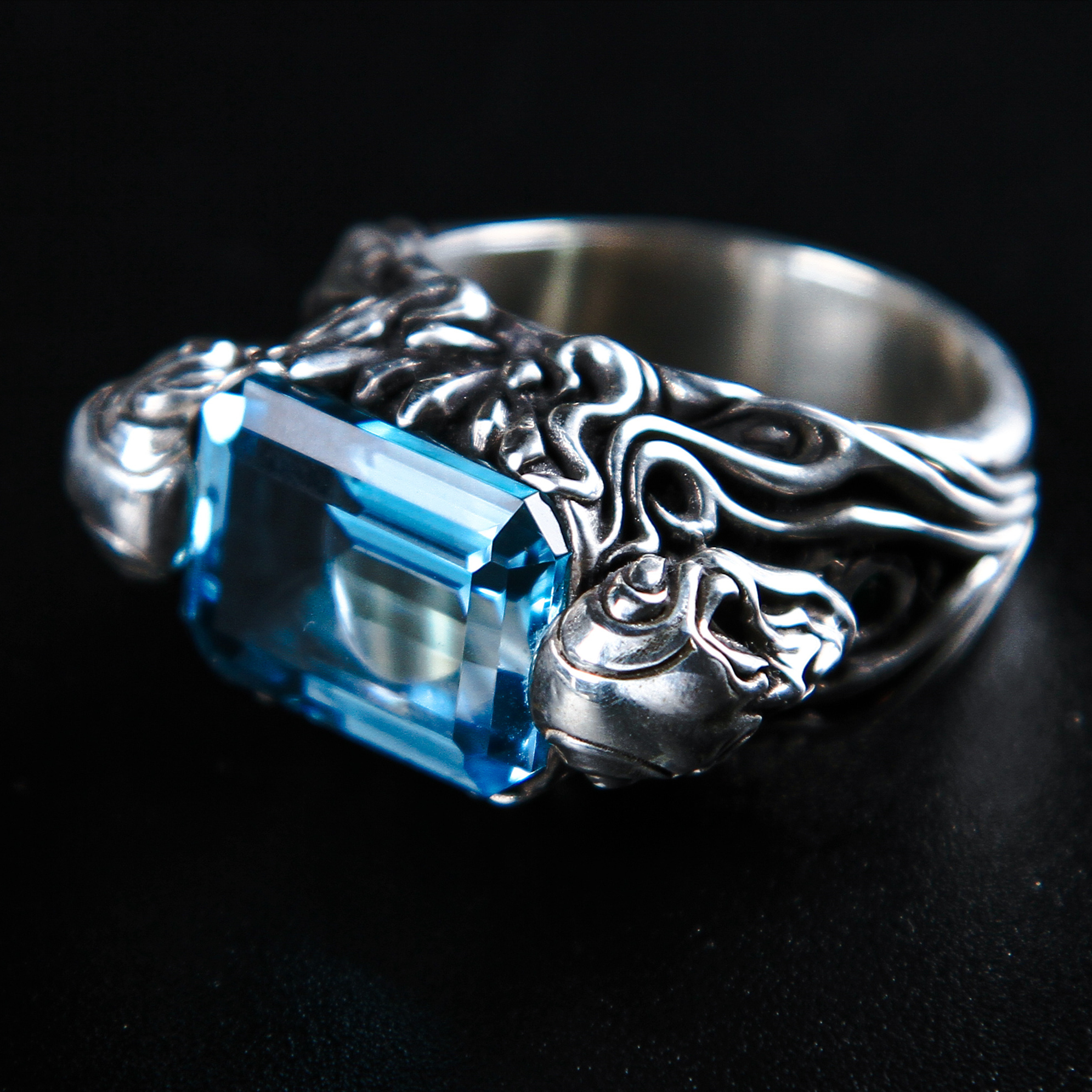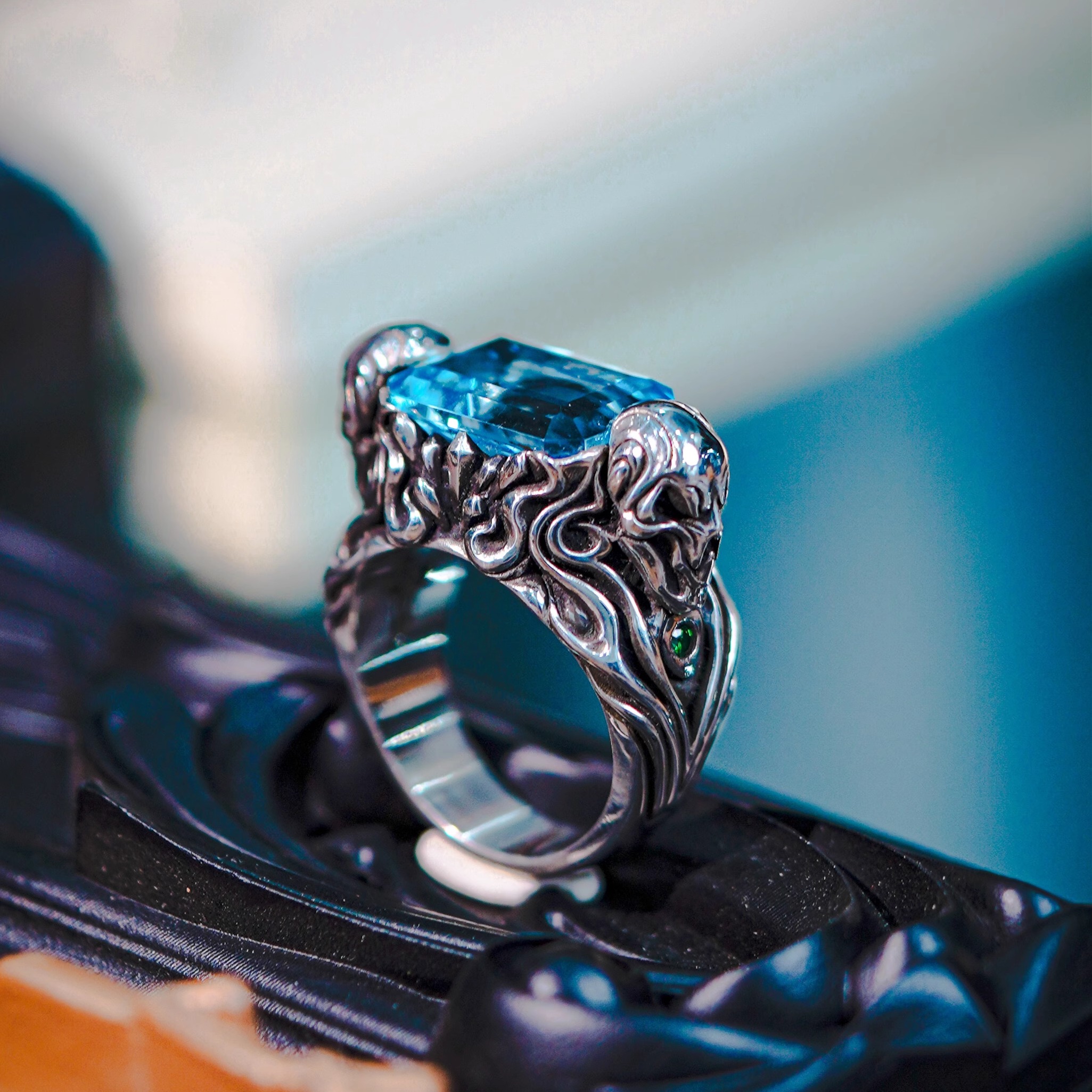 渡鸦工作室原创专属欧美哥特《暗夜使者》戒指托帕石镶嵌纯银指环