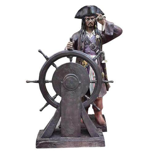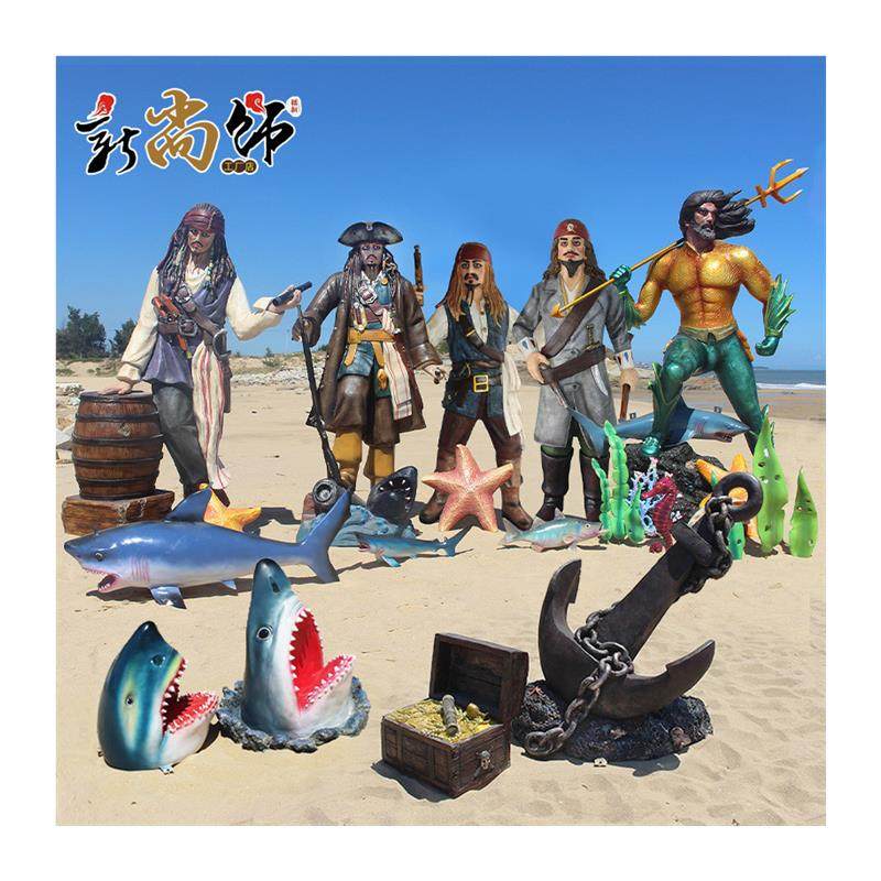玻璃钢加勒比海盗船长雕塑大型摆件家居软装装饰仿真鲨鱼螃蟹模型