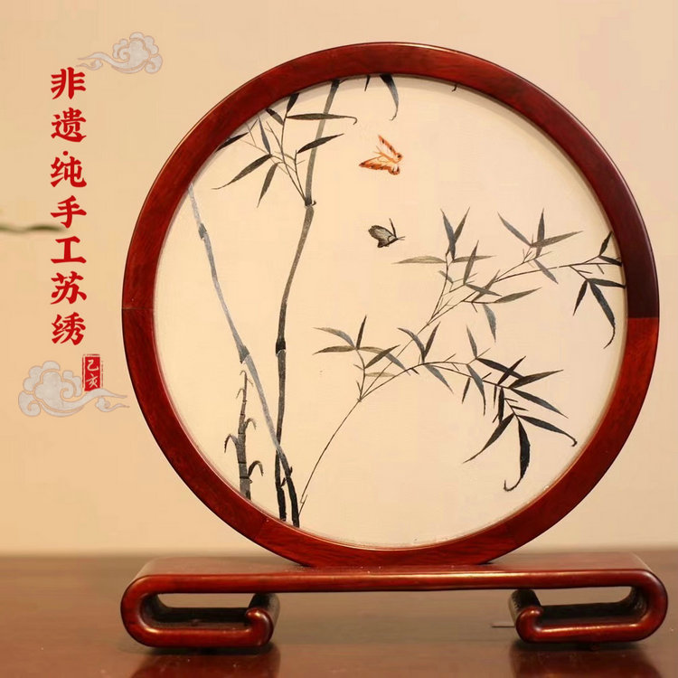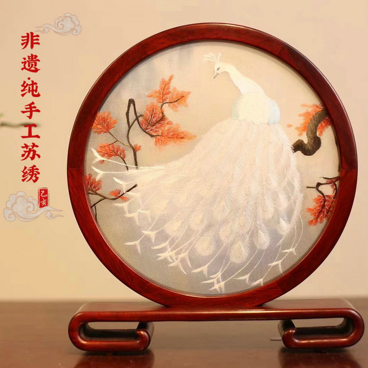纯手工苏绣摆件双面绣花台屏家居装饰摆台乔迁新居礼品中国风礼物