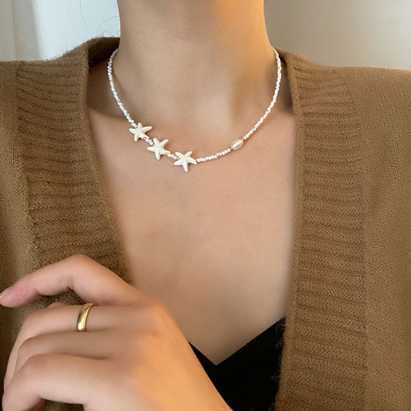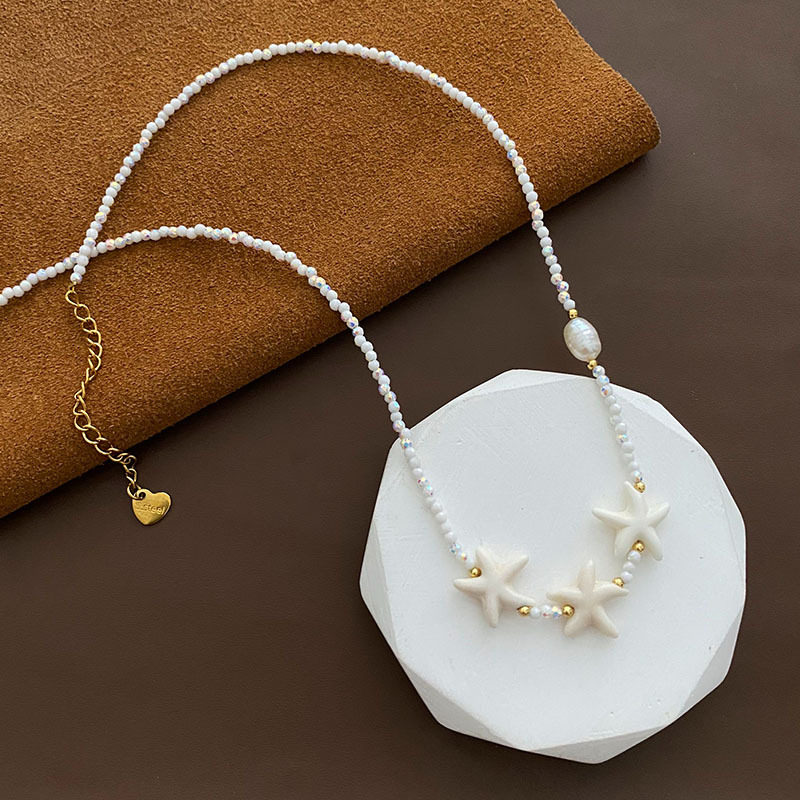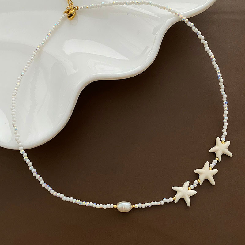 小众设计感海星白水晶颈链简约清新淡水珍珠项链精致锁骨链女