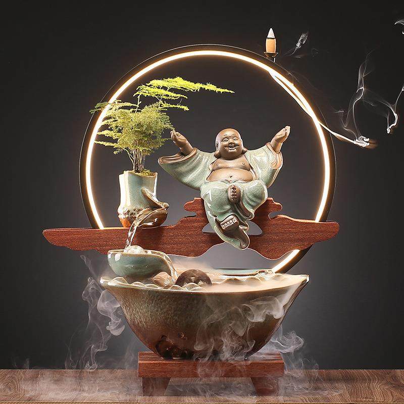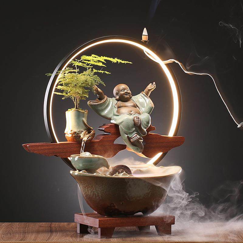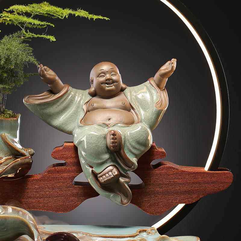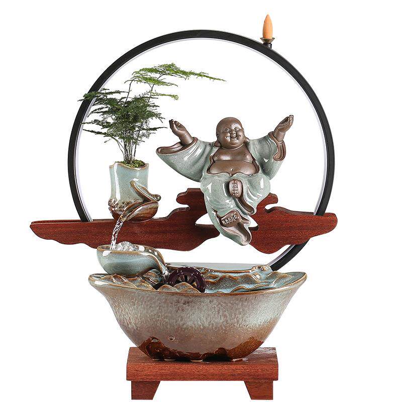 直销新款招财流水摆件创意假山喷泉循环加湿器陶瓷家居办公室桌面