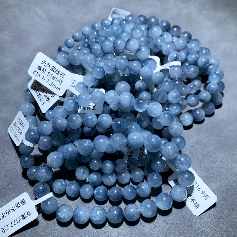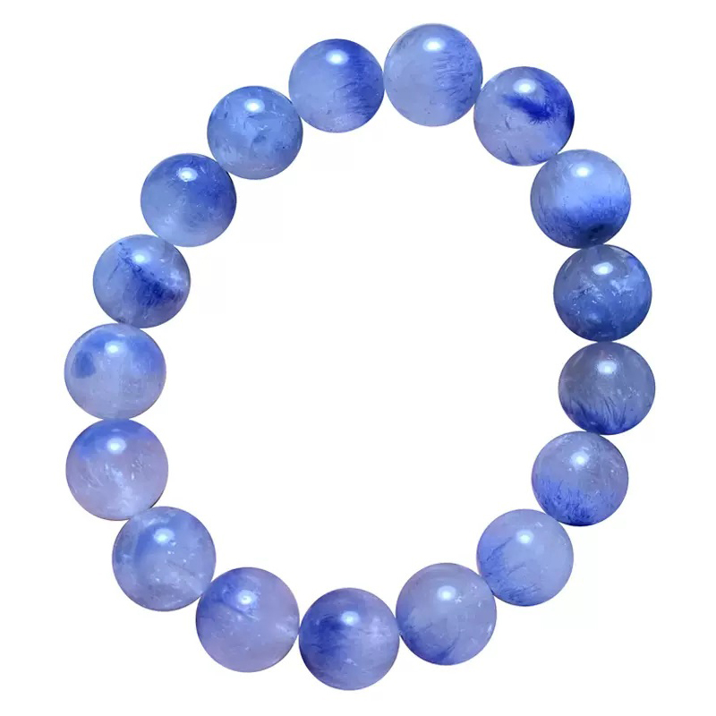 天然冰种蓝线石手链圆珠水晶蓝发晶民族风男女礼物蓝绒晶饰品手串