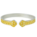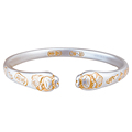 银手镯女9999纯妈妈款实心新款银饰卷草纹描金镯子生日女神节礼物