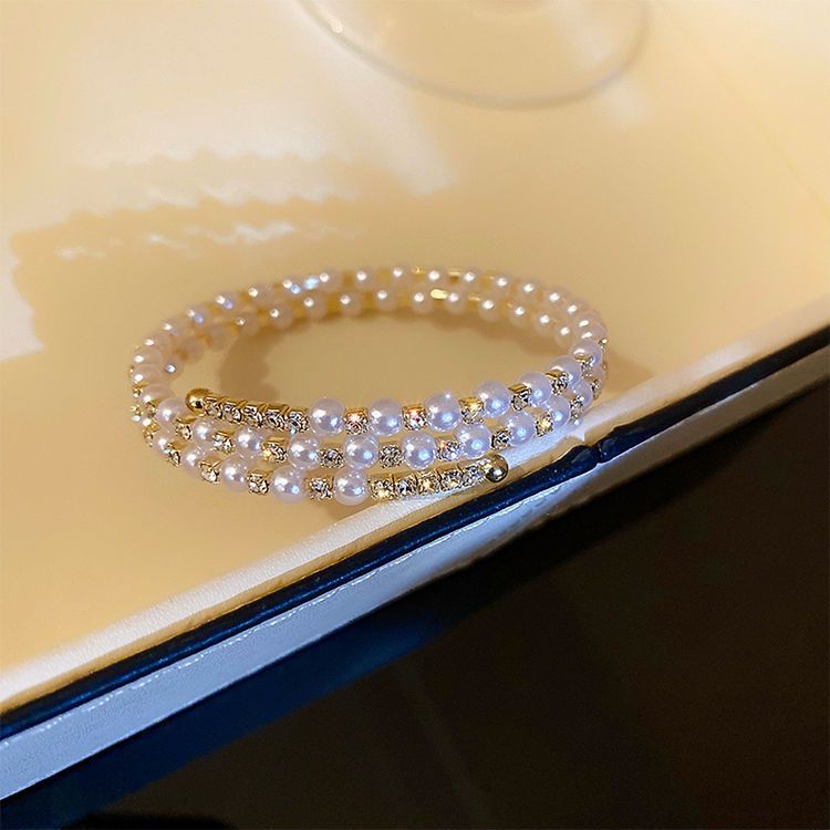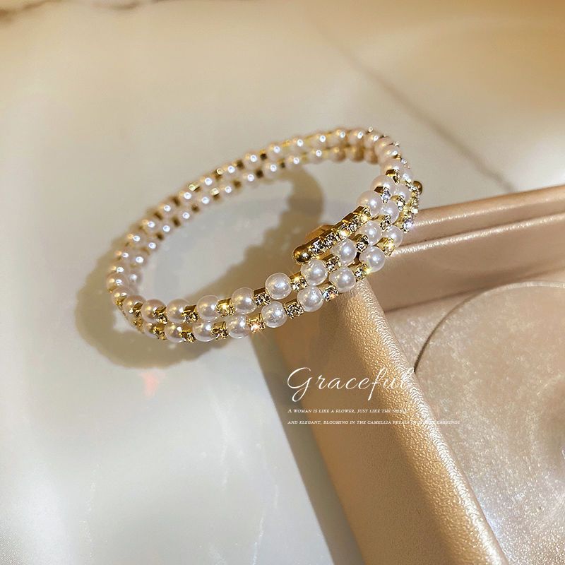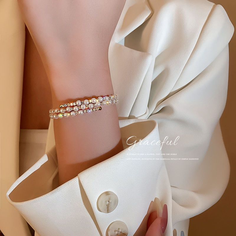 珍珠半镯手链高级感双层珍珠镶钻手镯小众设计感手链手饰品时髦新
