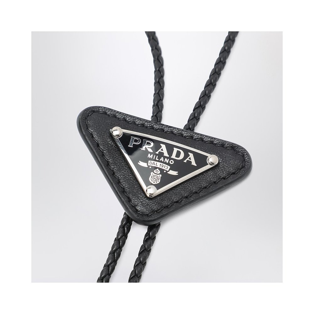 1h可退 香港直邮潮奢 Prada 普拉达 男士 bolo 黑色小牛皮带Logo