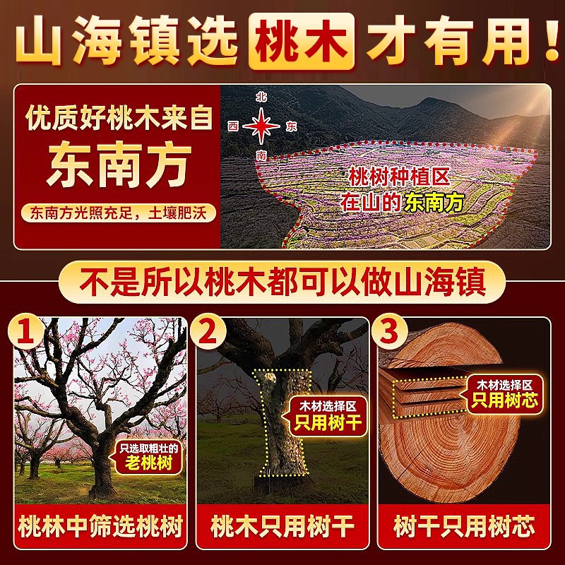 桃木山海镇牌八卦镜木雕挂件家居房屋装饰摆件室内室外凸镜山海图