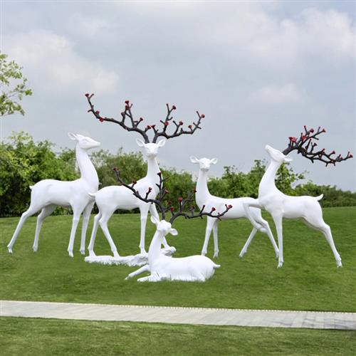 仿铜梅花鹿雕塑户外白鹿玻璃钢抽象模型园林景观大型仿真动物摆件