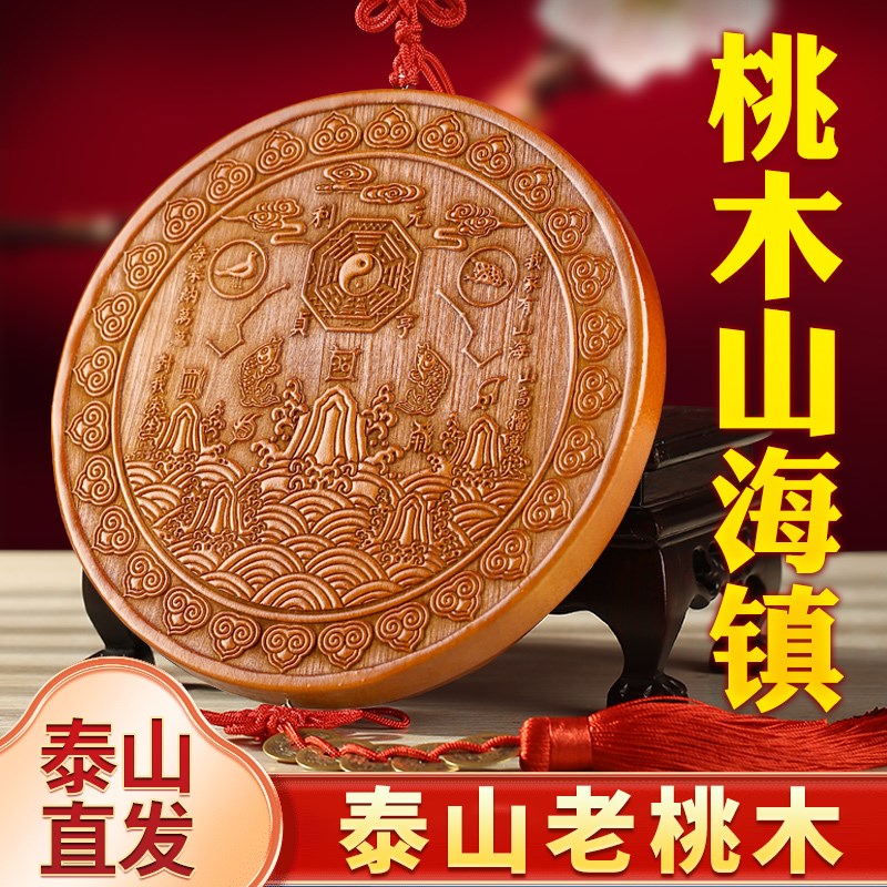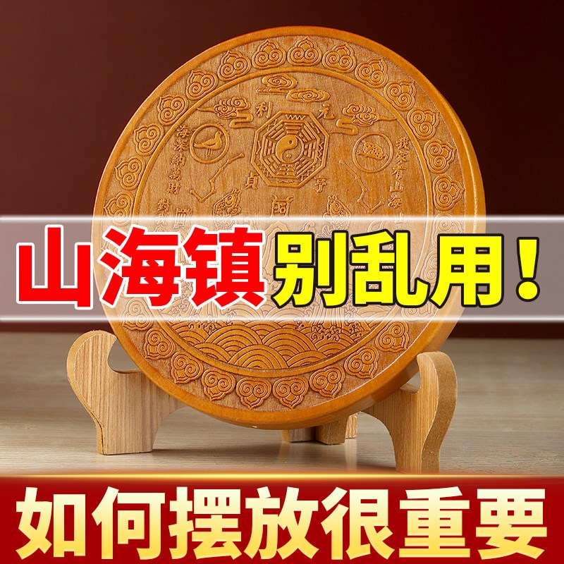 桃木山海镇挂件门口室外玄关山海镇桃木室内山海镇摆件带八卦镜子