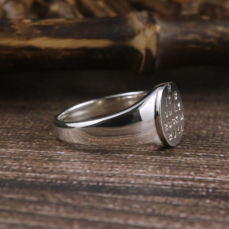 AMP JAPAN摇滚乐纯银戒指男女情侣一对复古小众刻字定制印章戒指