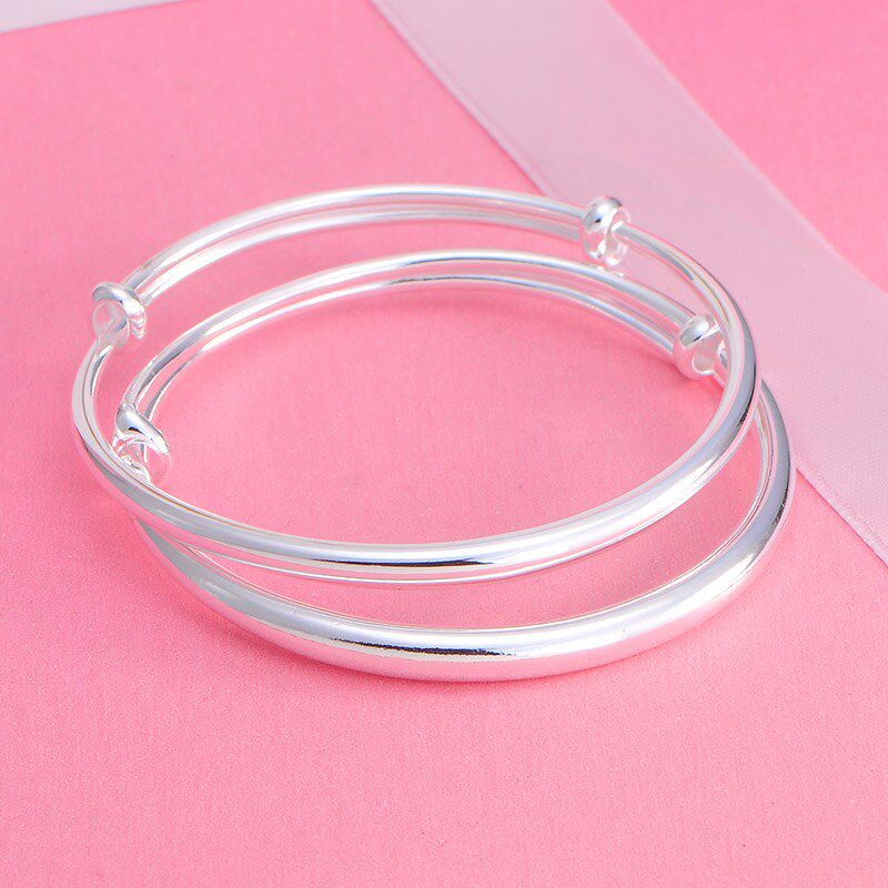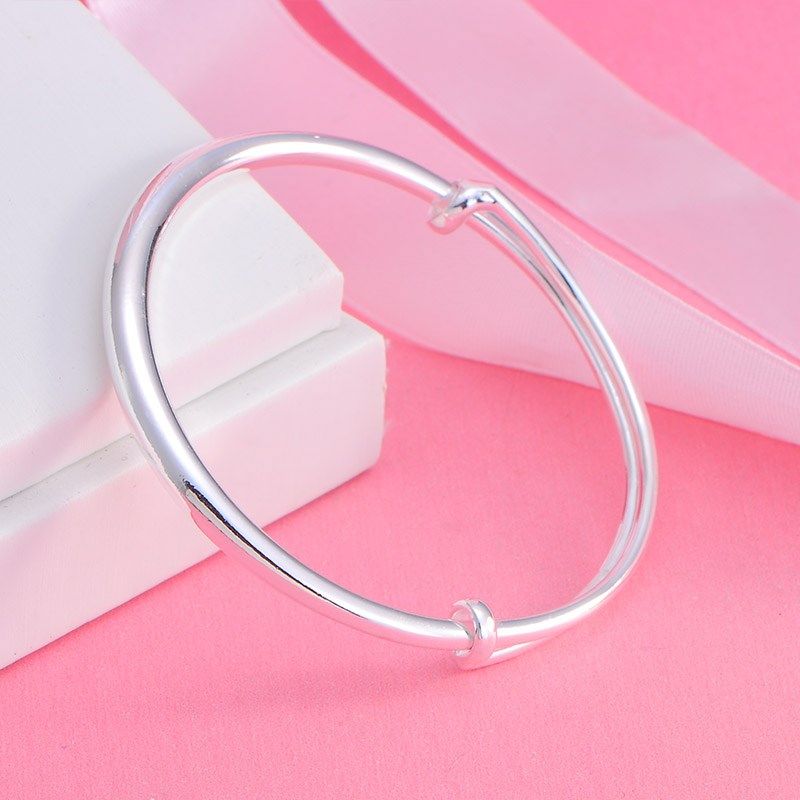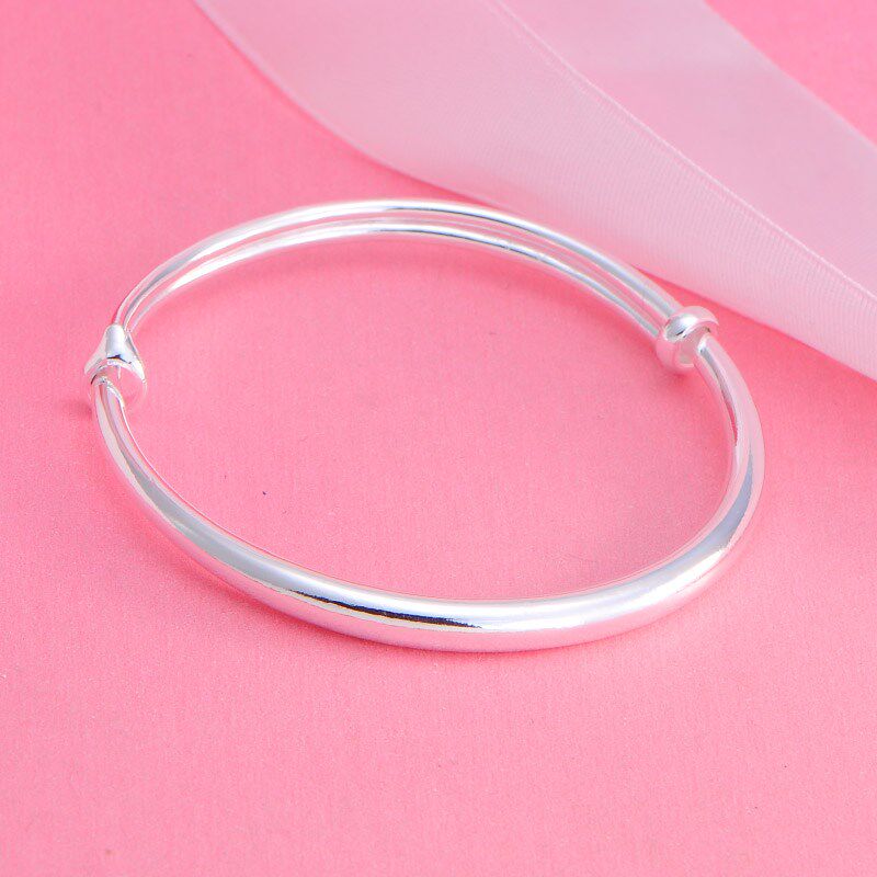 光面银手镯999纯银实心男女款圆条日韩简约情侣镯子 送妈妈礼物