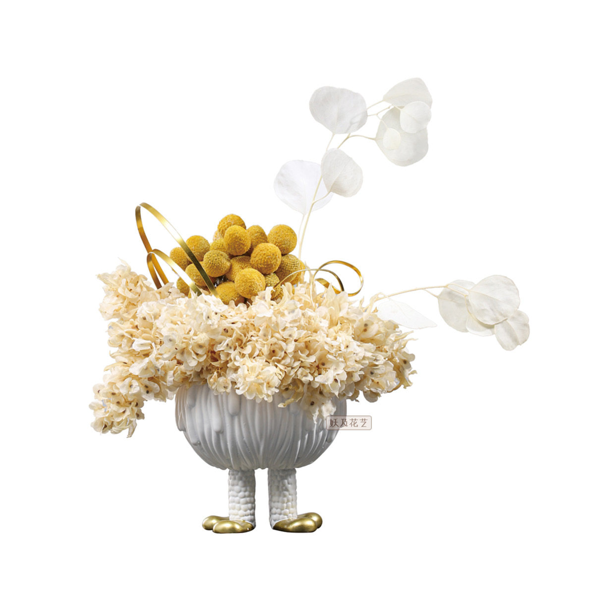 妖及 现代艺术黄色干花仿真花 样板间儿童房卧室床头柜桌面摆件