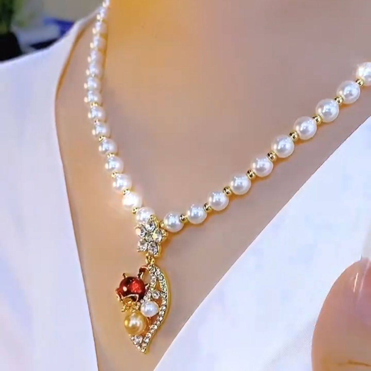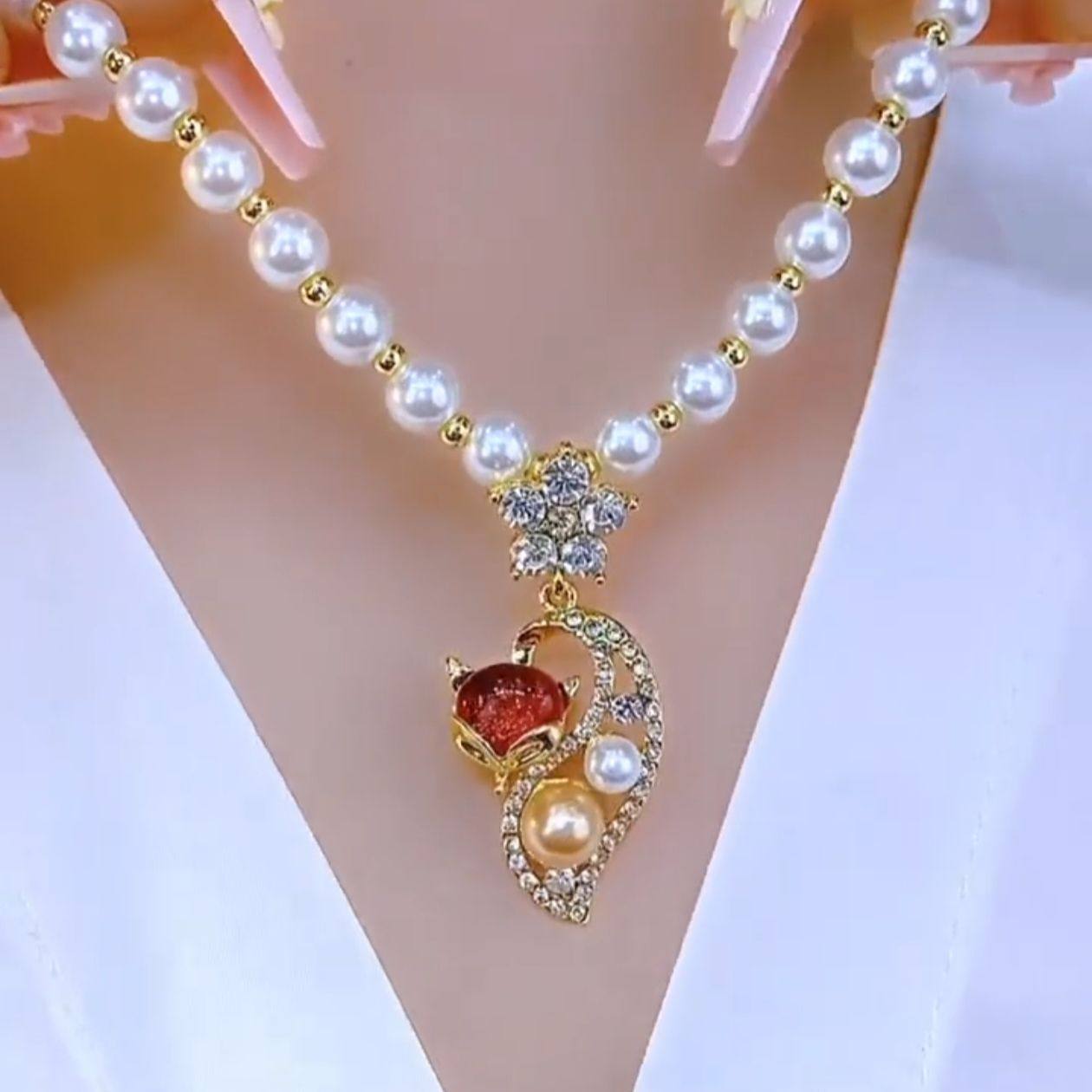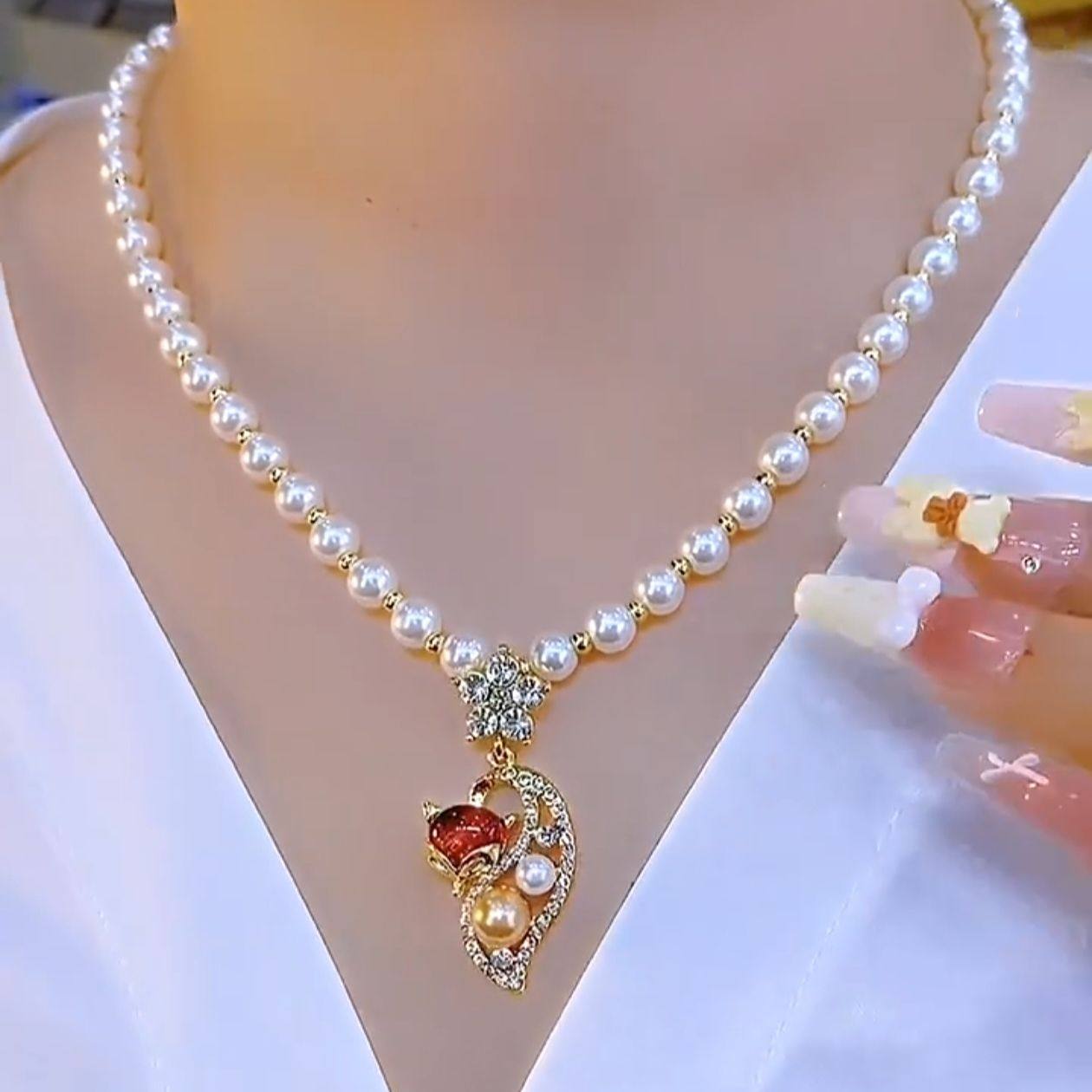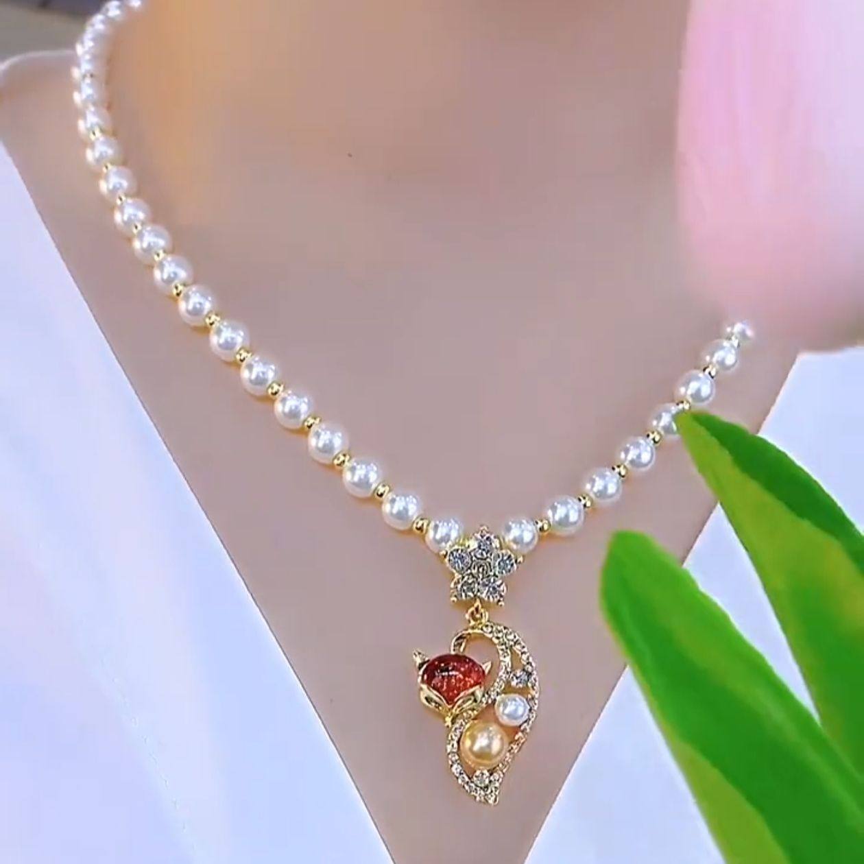 法式轻奢红色狐狸珍珠项链女网红爆款轻奢气质百搭精美爆款项链女